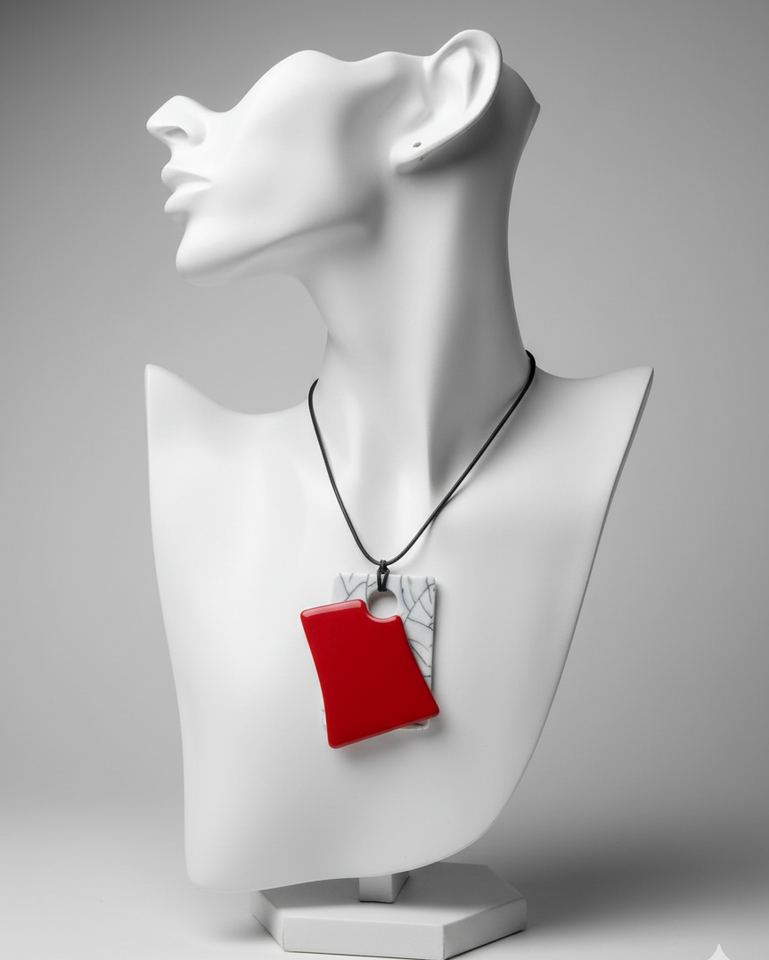 สร้อยคอจี้เรซิ่นสีแดงและสีขาวแบบนามธรรมทำด้วยมือ | เครื่องประดับทรงเรขาคณิตสมัยใหม่ | สร้อยคอแฟชั่นขายส่งแบบกำหนดเอง