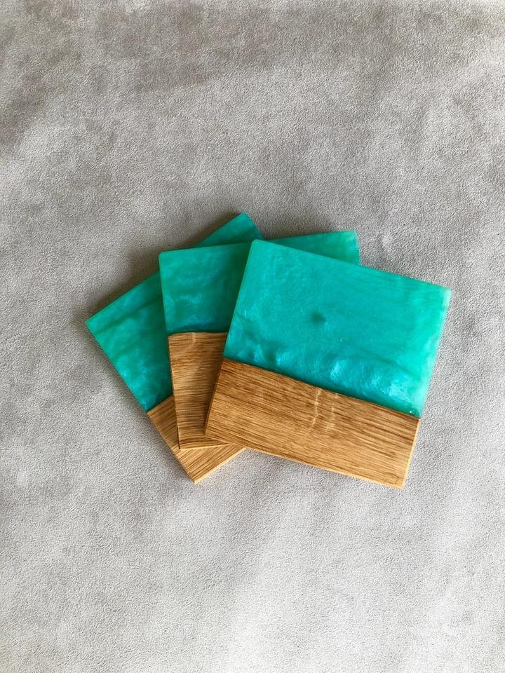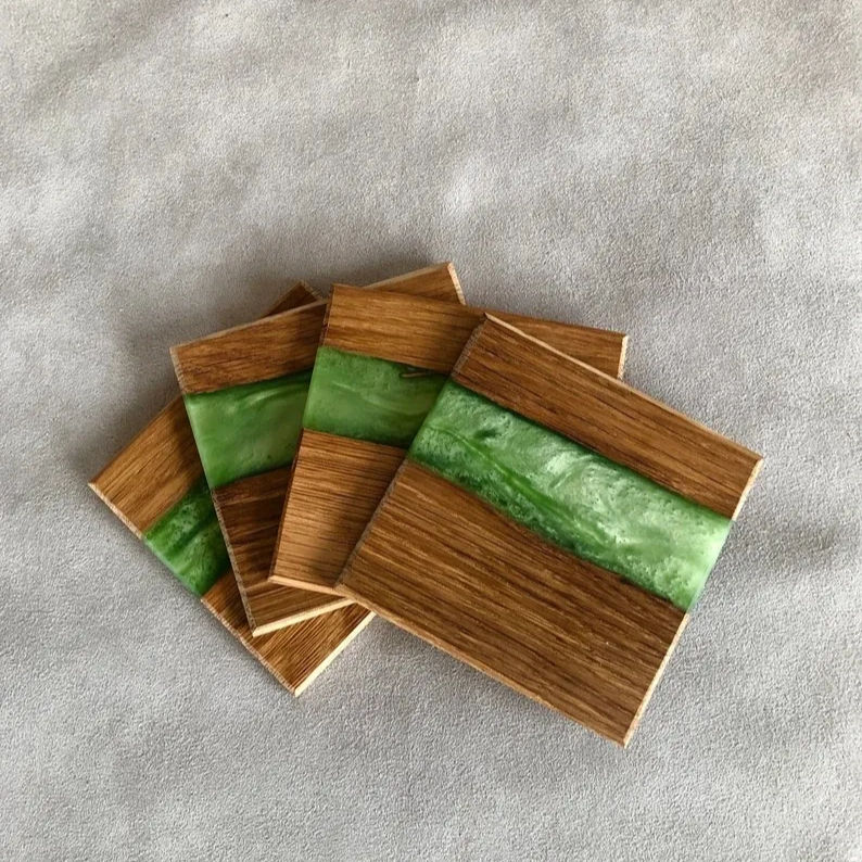 ชุดรองแก้วไม้กระถินสีดําแฮนด์เมด - สีเขียวมะนาวราคาส่ง