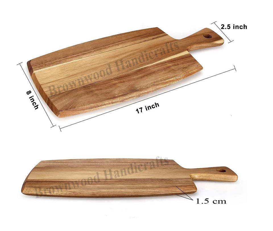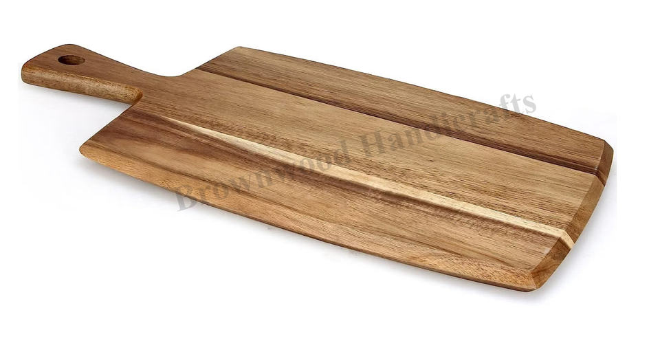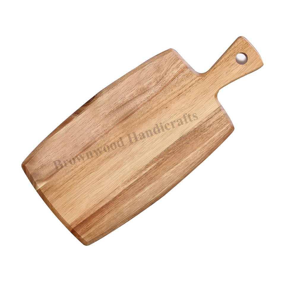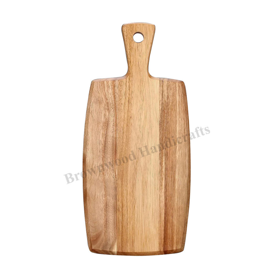 เขียงไม้อะคาเซียทำด้วยมือสีธรรมชาติยอดนิยมพร้อมด้ามจับที่สะดวกสบายเหมาะสำหรับงานทำอาหารราคาส่ง