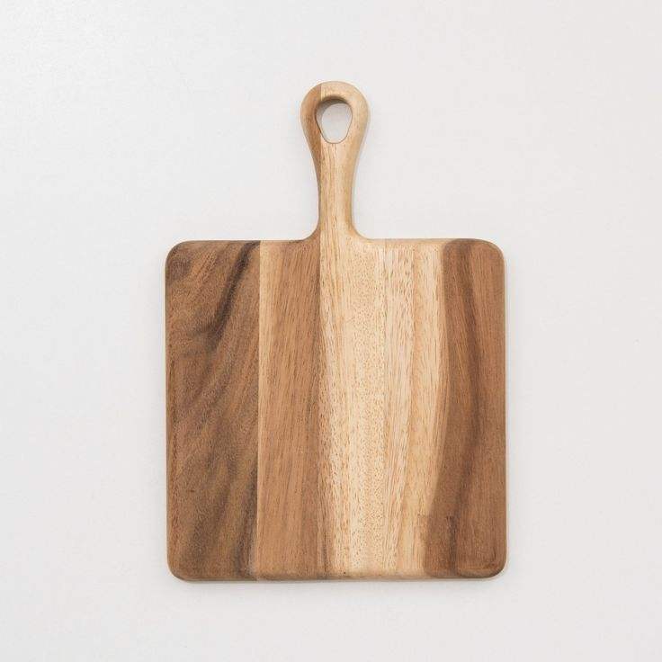 เขียงไม้อะคาเซียทำด้วยมือมีด้ามจับที่ทนทานเขียงไม้สี่เหลี่ยมสำหรับครัวที่ตัดชีสเนื้อชีสถาด