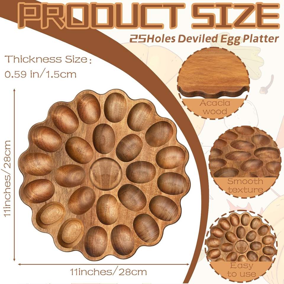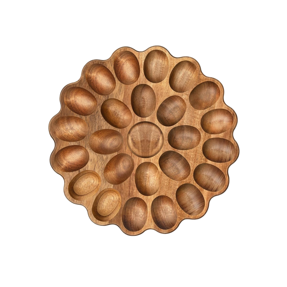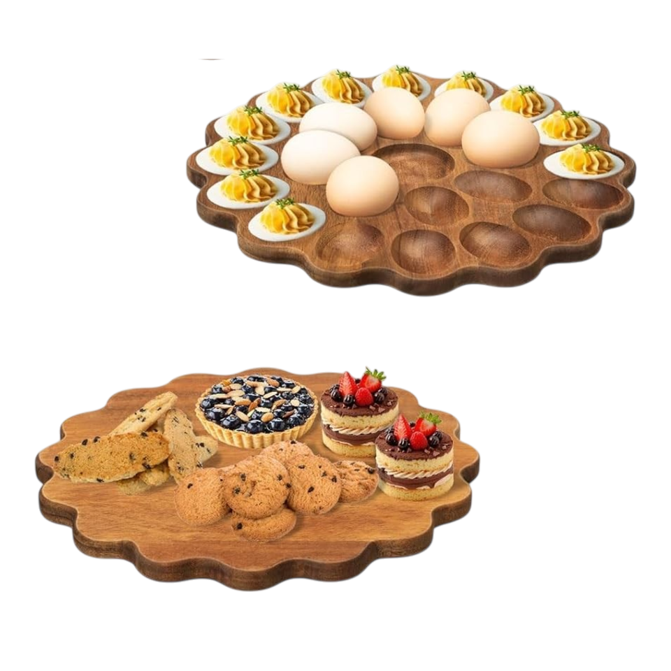 ถาดใส่ไข่ทำมือจากไม้กระถินณรงค์รักษ์โลก ถาดเสิร์ฟ จานชาร์กูเตอรี ของตกแต่งบ้านสำหรับครัว งานอีสเตอร์ และปาร์ตี้