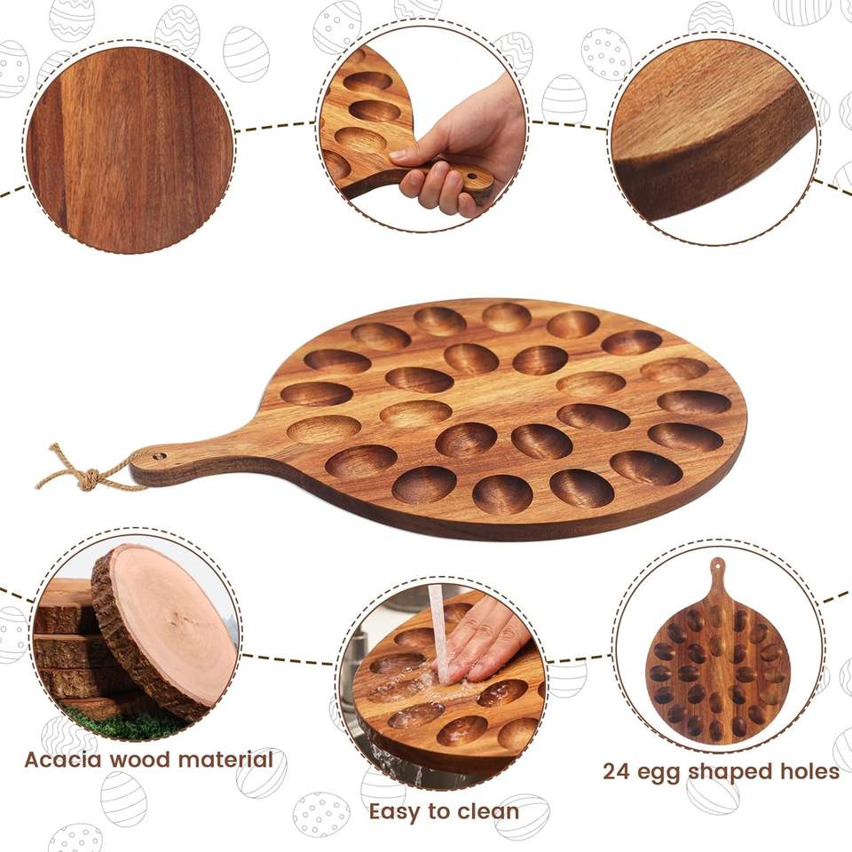 ถาดใส่ไข่ทำมือจากไม้กระถินณรงค์ ถาดไม้ทรงกลมสำหรับใส่ไข่ จานเสิร์ฟ ชาร์กูเตอรีบอร์ด ของตกแต่งครัว ของตกแต่งบ้านสำหรับงานอีสเตอร์