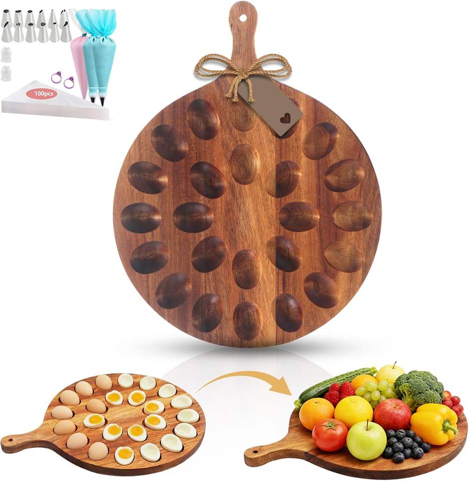 Acacia Wood Deviled Egg Tray