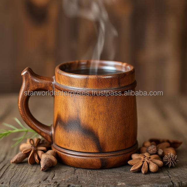 แก้วมักทำด้วยมือไม้อะคาเซียดีไซน์เป็นเอกลักษณ์สำหรับโต๊ะในครัวราคาปริมาณมากสำหรับดื่มกาแฟและน้ำ