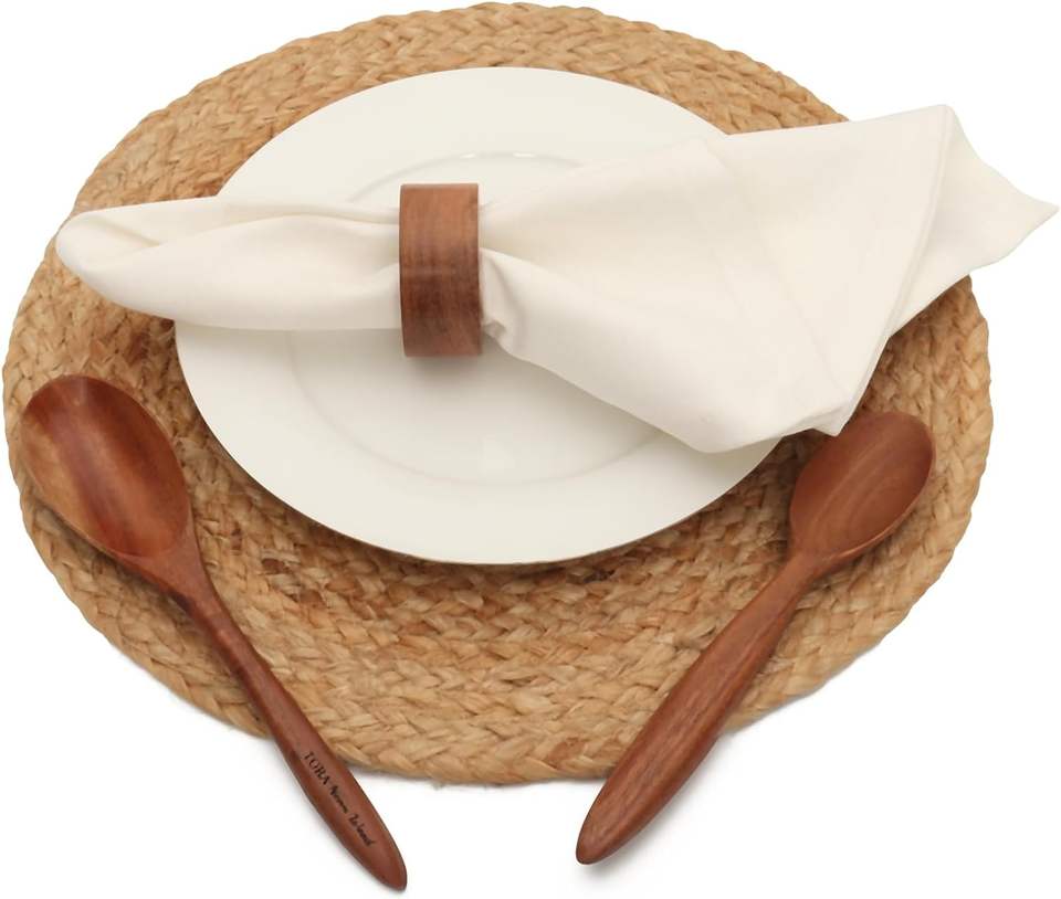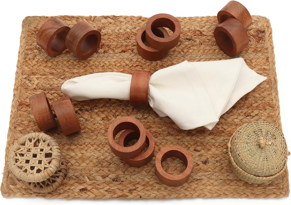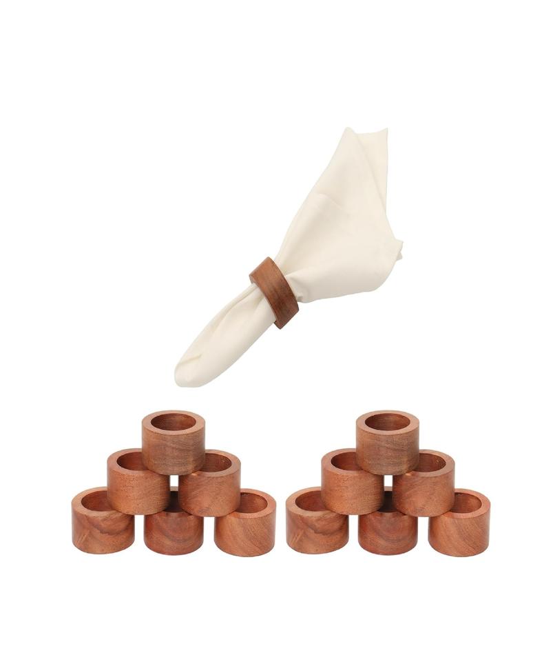 ชุดแหวนผ้าเช็ดปากทำจากไม้อะคาเซียทำมือชุดละ12ชิ้นสำหรับฉลองครบรอบการรับประทานอาหารวันเกิดวันคริสต์มาสผ้าเช็ดปากสำหรับตกแต่งบ้านและห้องครัว