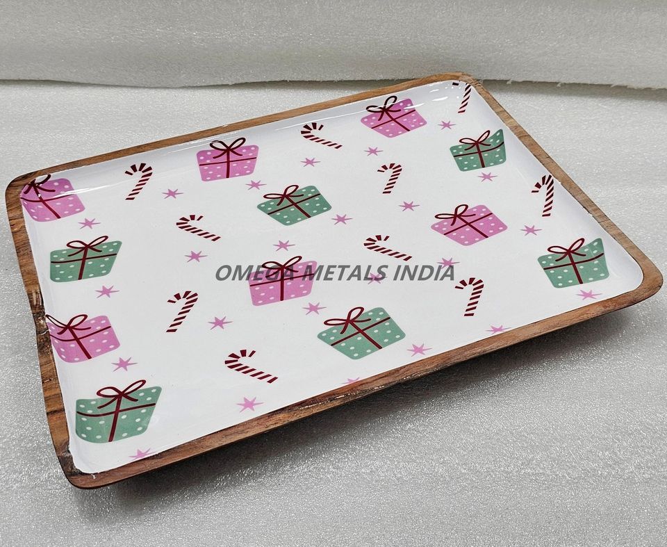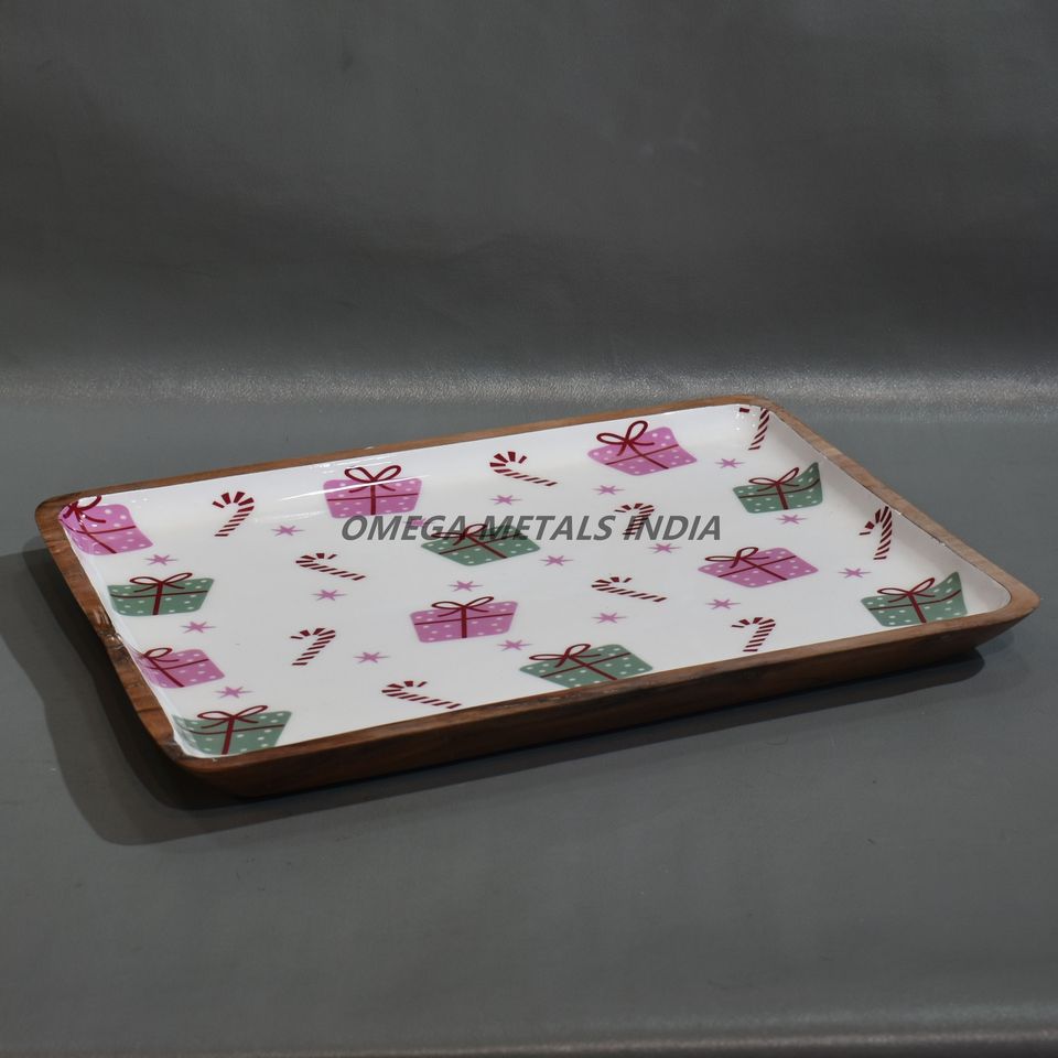 ถาดเสิร์ฟไม้อะคาเซียทำด้วยมือถาดของขวัญทันสมัยสำหรับห้องครัวพร้อมธีมวันหยุดสีสันสดใสพื้นผิวเรียบ