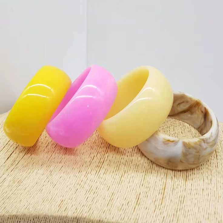 กำไลข้อมือเรซิ่นอะคริลิคทำมือสำหรับผู้หญิง เครื่องประดับ ของขวัญสำหรับงานปาร์ตี้ กำไลข้อมือแบบวงกลมเรียบๆ กว้าง สำหรับสุภาพสตรี