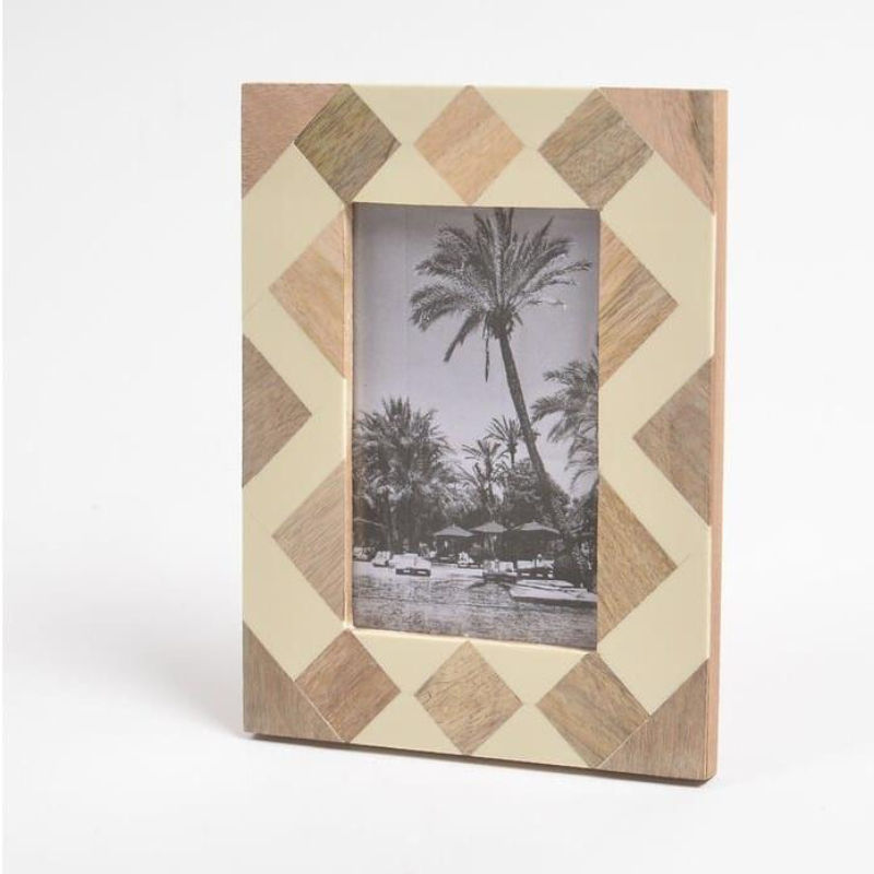 กรอบรูปไม้ทำมือปรับได้ ลายทางสีดำขาวชมพู ประดับเรซิ่น ตกแต่งบ้านสไตล์โมเดิร์น วางโชว์บนโต๊ะได้อย่างมีสไตล์