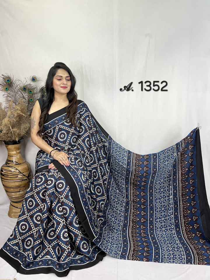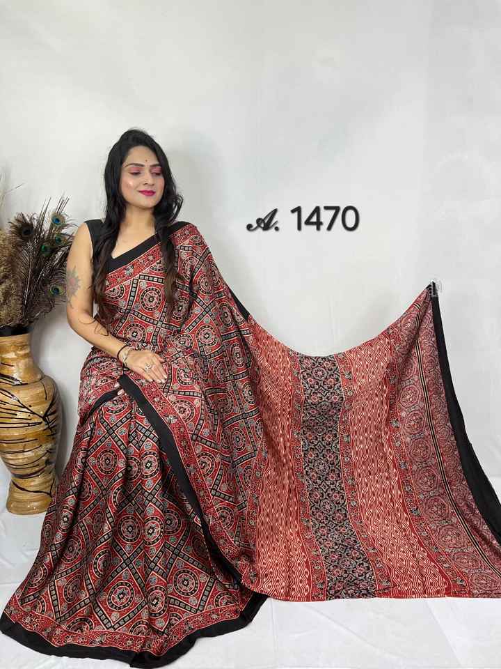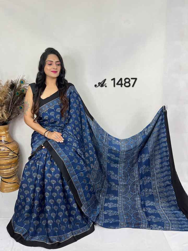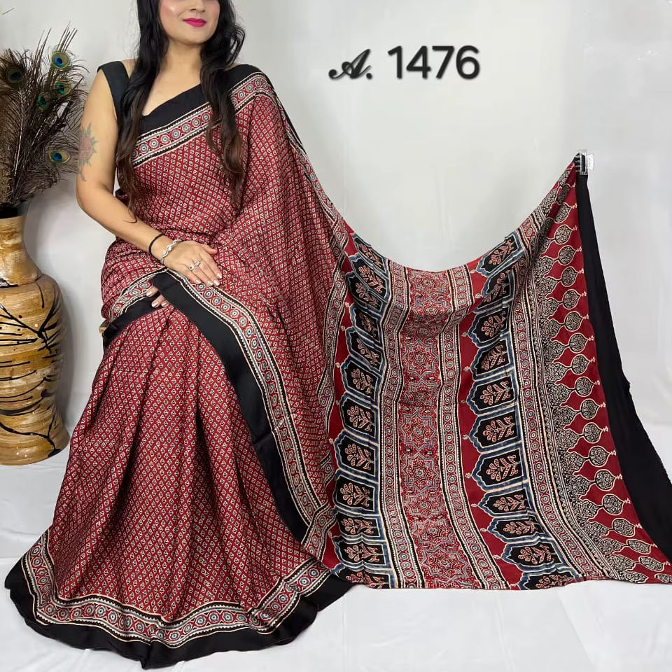 Saree ผ้าไหมที่มีน้ำหนักมากสำหรับผู้หญิงผ้าส่าหรีไหมพิมพ์ลายดอกไม้ธรรมชาติทำด้วยมือรูปแบบบล็อกแบบดั้งเดิม