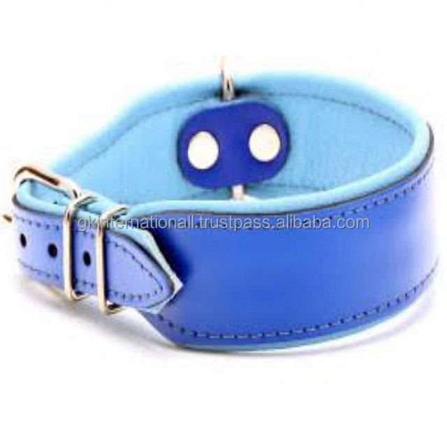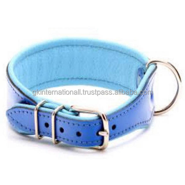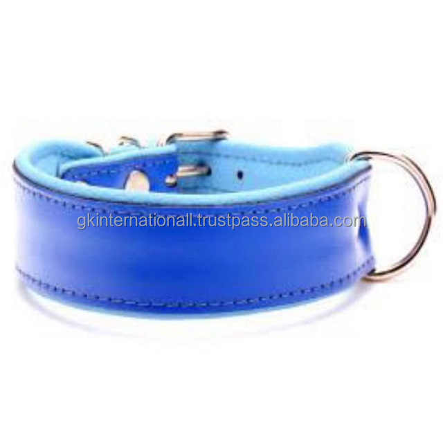 ปลอกคอสัตว์เลี้ยงทำด้วยมือ,ปกหนังสุนัขสีฟ้าล้วนหรูหราพร้อมแผ่นรองนุ่มและคอสัตว์เลี้ยงเย็บหนังกว้างทนทาน