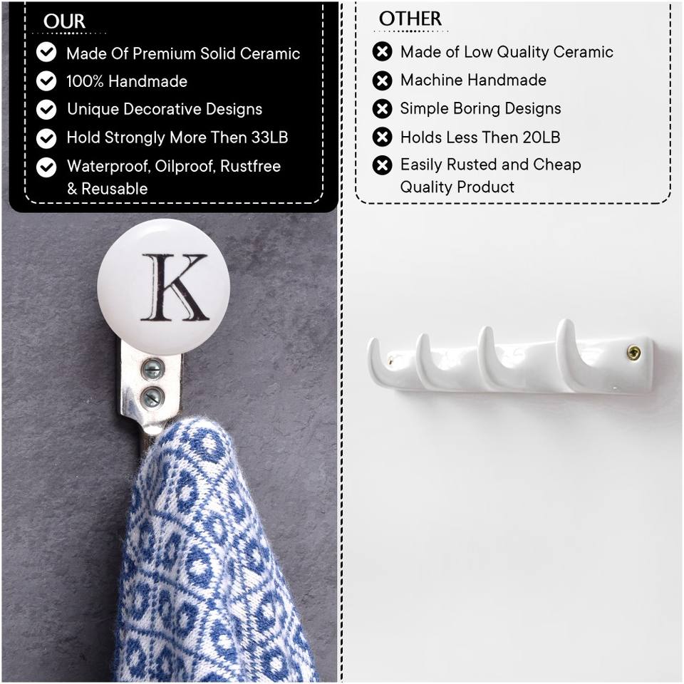ตะขอแขวนผนังเซรามิกรูปตัวอักษร ทำมือ สีขาวดำ สำหรับแขวนเสื้อโค้ท หมวก กระเป๋า เสื้อผ้า แข็งแรง ทนทาน