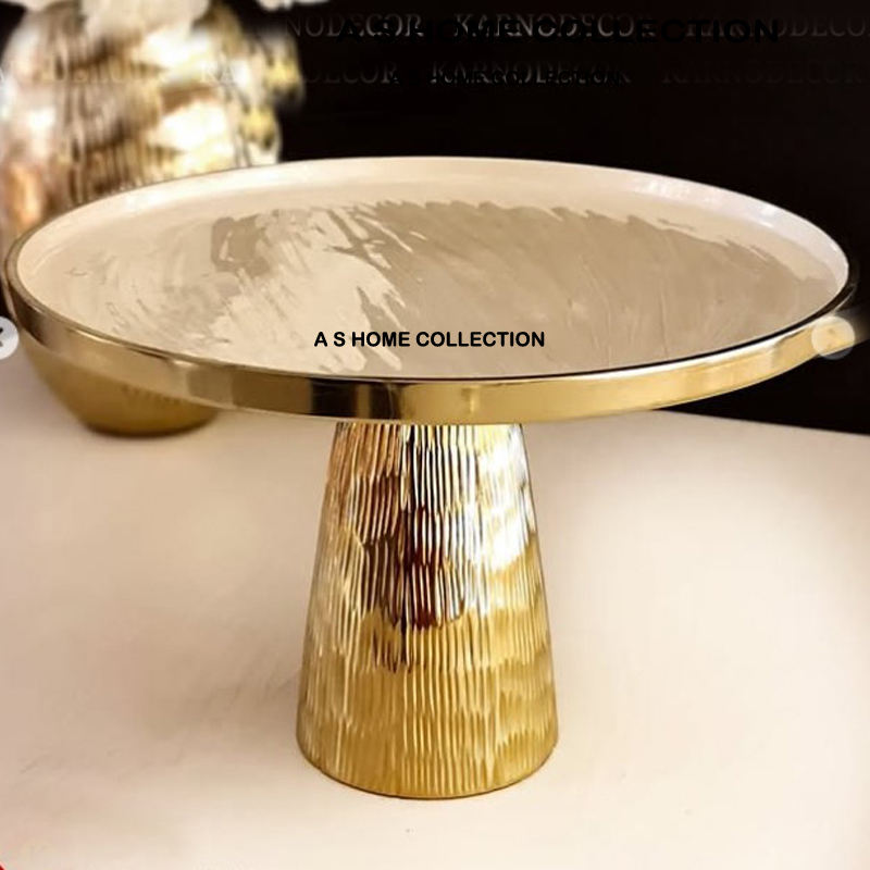 แท่นวางเค้กโลหะอลูมิเนียมทำด้วยมือพร้อมผิวสีทองหรูหราเหมาะสำหรับของขวัญแต่งงานและการจัดแสดงเค้กแฟนซีสุดหรู