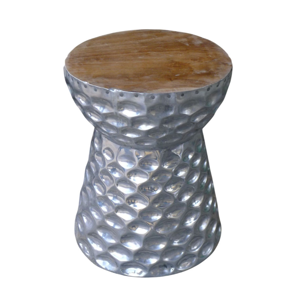 โต๊ะกาแฟอะลูมิเนียมทำมือ โต๊ะข้างโลหะสีเงินลายตอกแบบพิเศษ เก้าอี้ไม้ทรงกลมสวยหรู เฟอร์นิเจอร์ตกแต่งบ้าน
