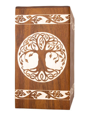 โกศใส่ศพไม้ธรรมชาติสีน้ำตาลสำหรับผู้ใหญ่ชายหญิงตกแต่งงานศพแบบกำหนดเองโลโก้สไตล์อเมริกันทำด้วยมือ
