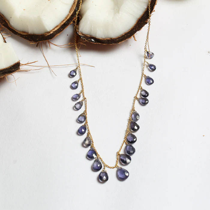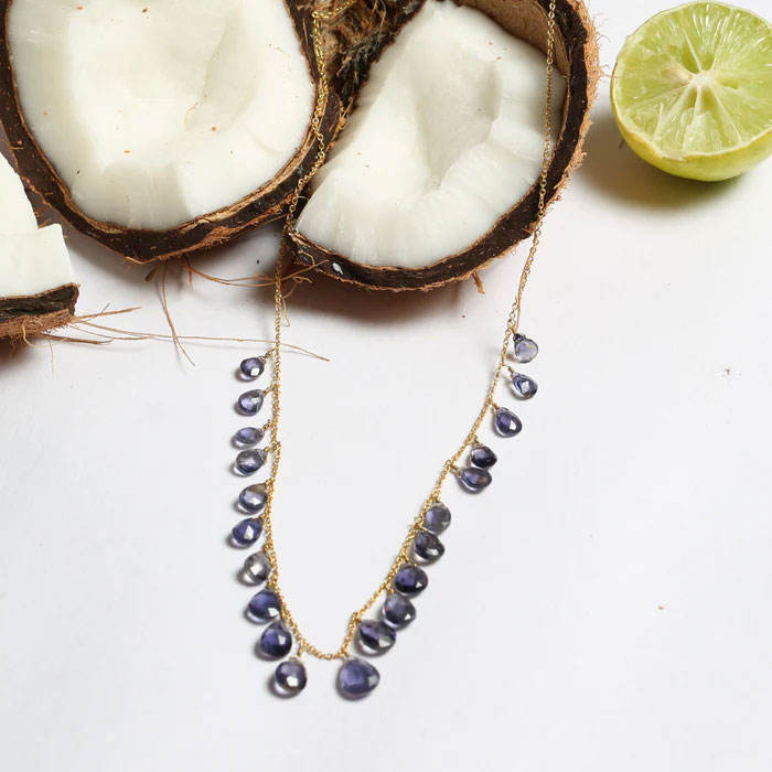 สร้อยคอห้อยหยดน้ำอะมีทิสต์ทำมือ พลอยสีม่วง โซ่ทอง สไตล์โบโฮ เครื่องประดับโดดเด่น ปรับขนาดได้ ของขวัญสำหรับผู้หญิง HARI
