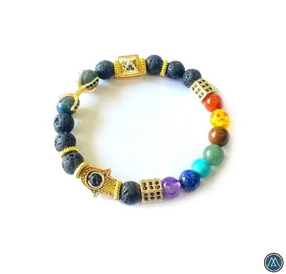 กำไลข้อมือแกะสลักด้วยมือรูปมือฮัมซา พร้อมจี้รูปพีระมิดโบราณประดับอัญมณี 7 จักระ สำหรับเสริมดวงและรักษาความรัก