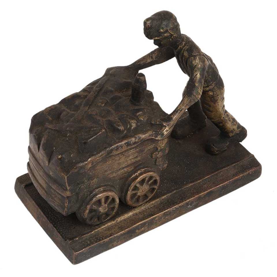 งานประติมากรรมทองเหลืองโบราณรูปคนขุดถ่านหินบนแท่น ของตกแต่งบ้าน ของขวัญ
