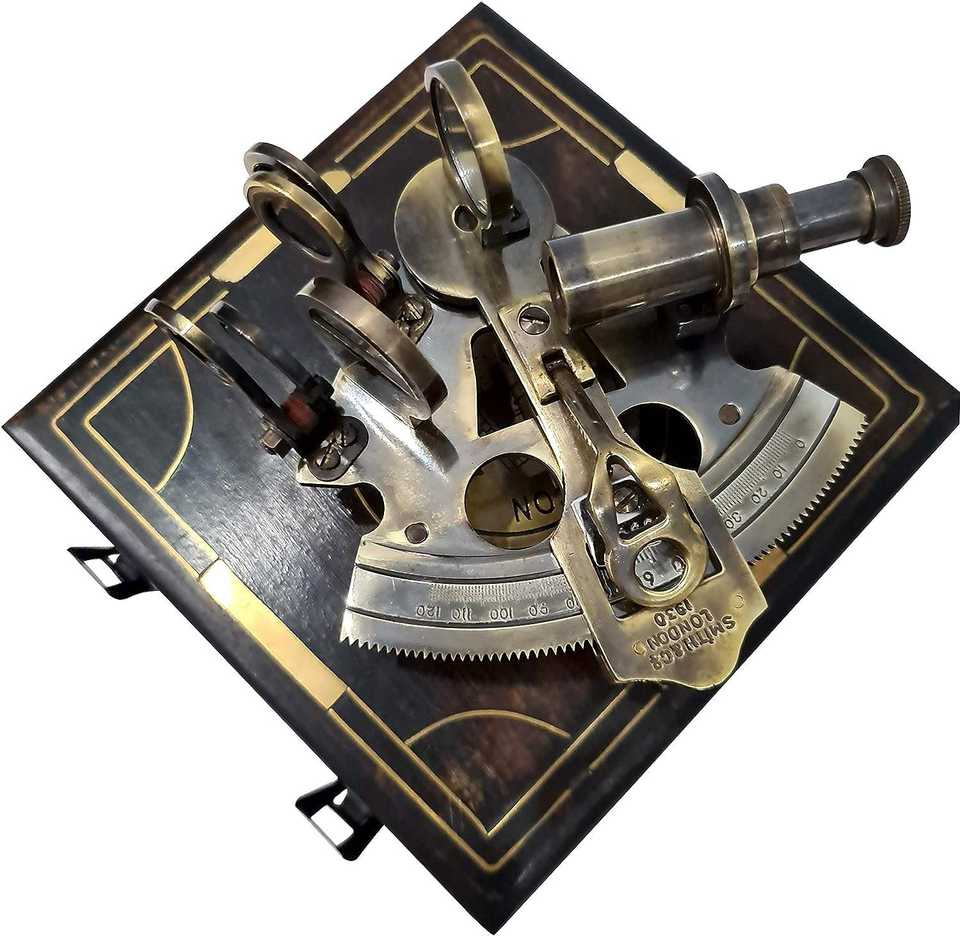เซกส์แทนท์ทองเหลืองโบราณทำมือ ของตกแต่งเครื่องมือเดินเรือโบราณ ของสะสม