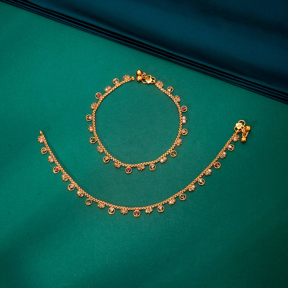 เครื่องประดับเงินแท้โบราณทำด้วยมือจากอินเดียพร้อมกำไลข้อเท้าแฟชั่นชุบทอง