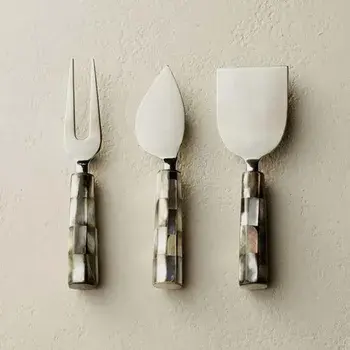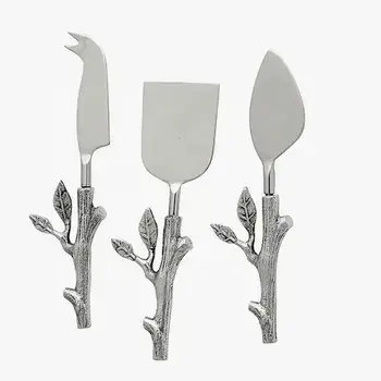 มีดหั่นชีสดีไซน์โบราณทำด้วยมือพร้อมส้อมด้ามไม้สลักสำหรับงานแต่งงานช้อนซัพพลายเออร์ดีไซน์แกะสลักด้วยมือที่เชื่อถือได้