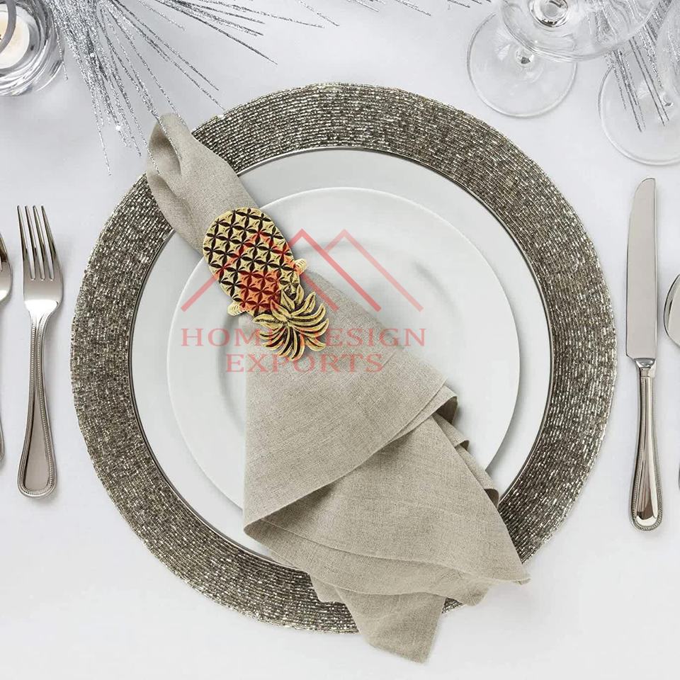 ห่วงใส่ผ้าเช็ดปากทำจากโลหะรูปสับปะรดโบราณทำด้วยมือสำหรับโรงแรมและร้านอาหารในบ้าน