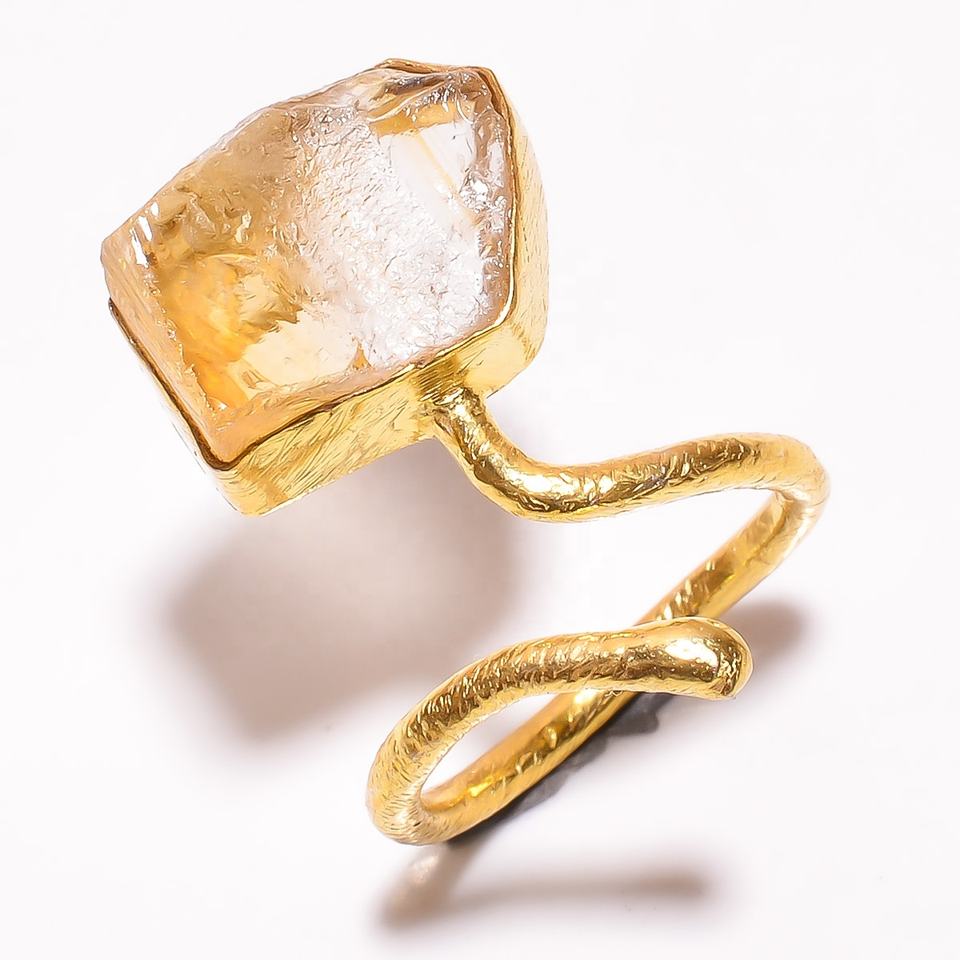 แหวนชุบทองสำหรับผู้หญิงทำด้วยมือ925โบราณรูปทรงสเตอริงเงินแหวนซิทรีนสำหรับงานเลี้ยงเครื่องประดับที่ดี