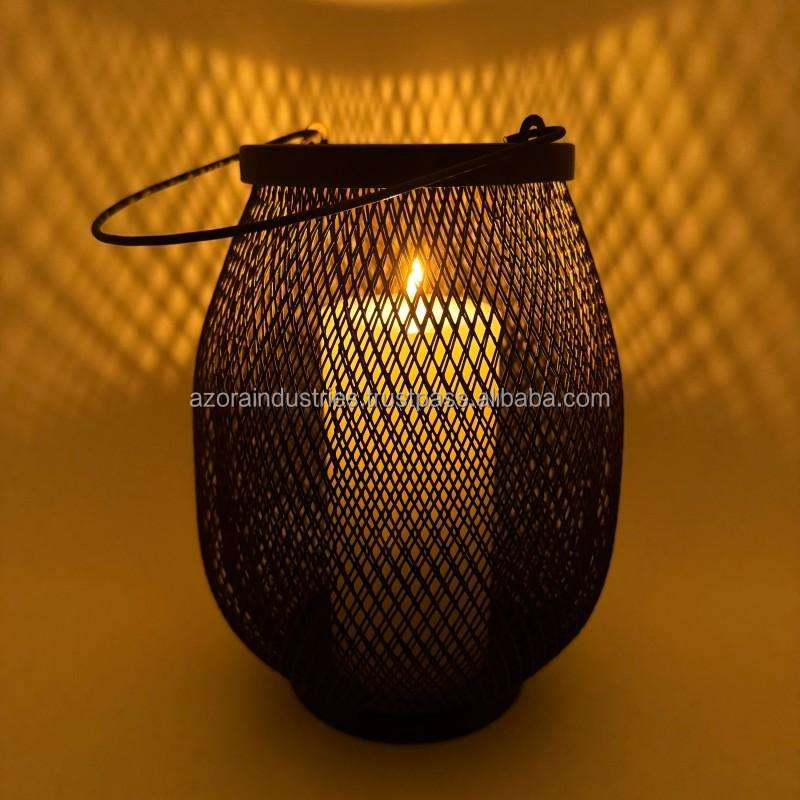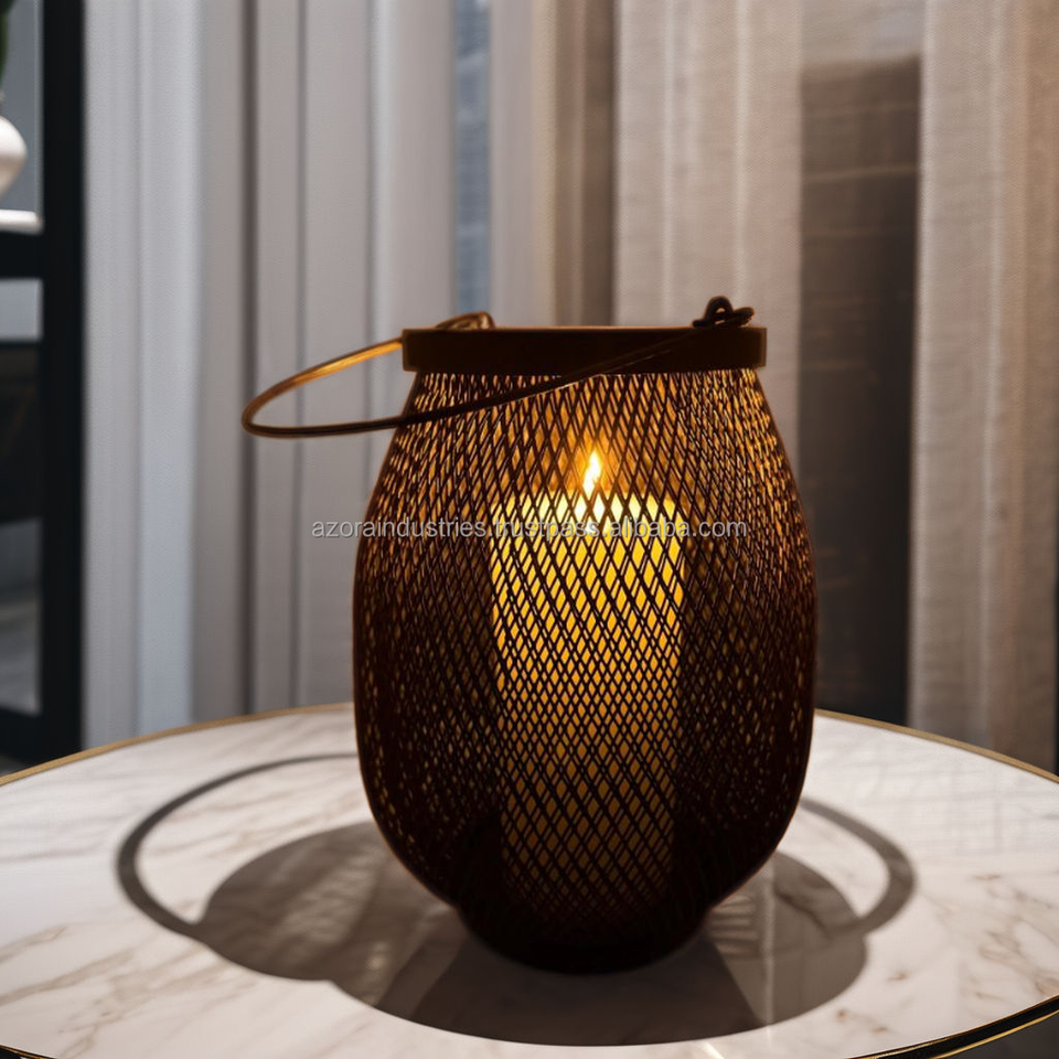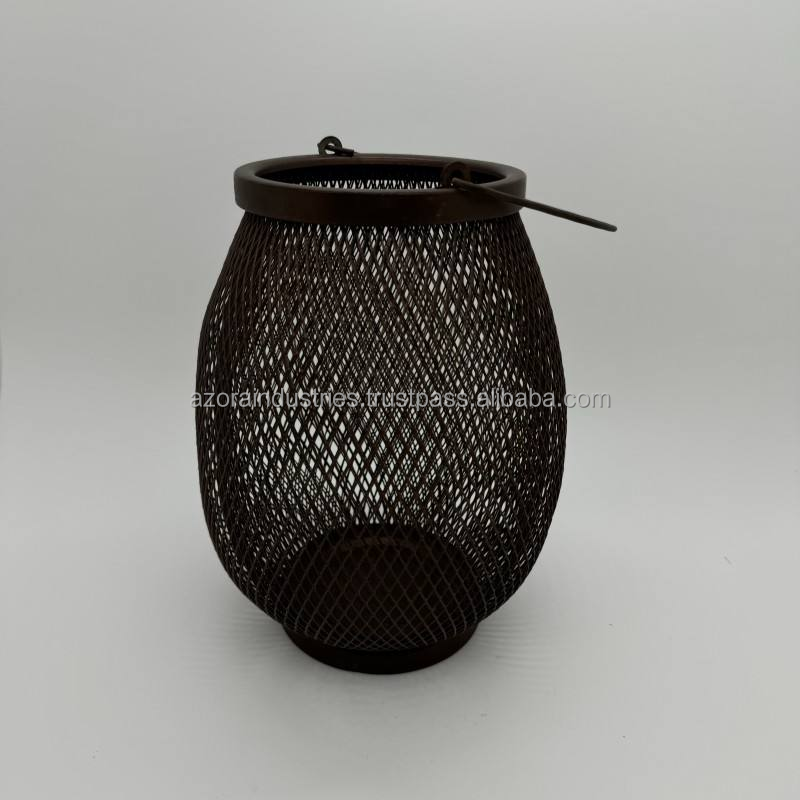 Handmade Antique Style Double Iron Mesh Metal Wire Votive Candle Holder Vintage Pillar Stand for Easter Home Decoration