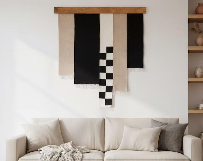 งานฝีมือตกแต่งผนังสไตล์วินเทจแบบมาคราเม่ สีดำและสีขาว เหมาะสำหรับห้องนอน ห้องนั่งเล่น และการตกแต่งภายในแบบคลาสสิก