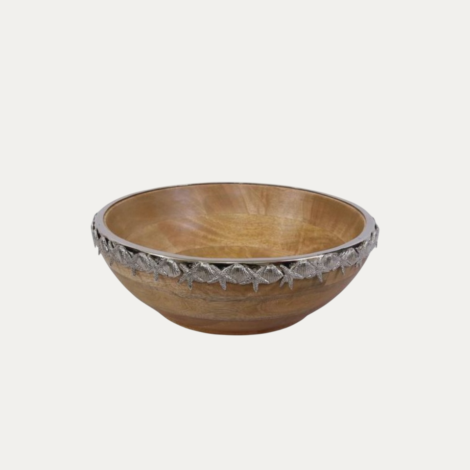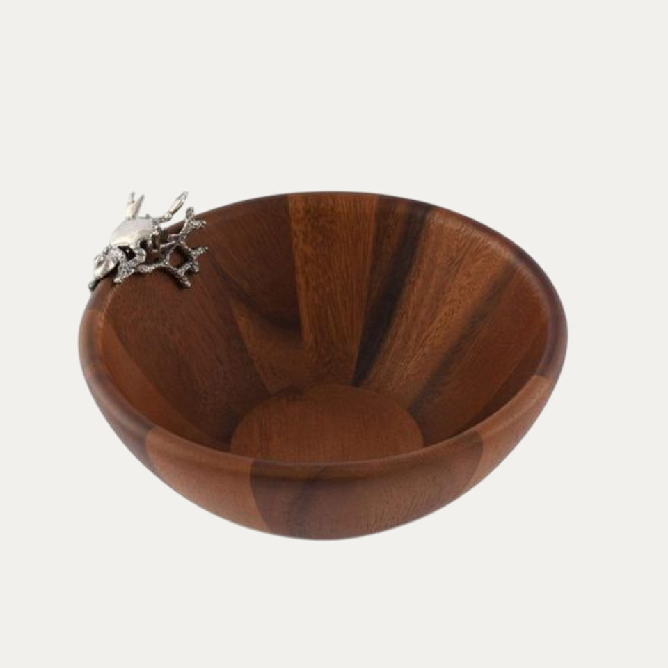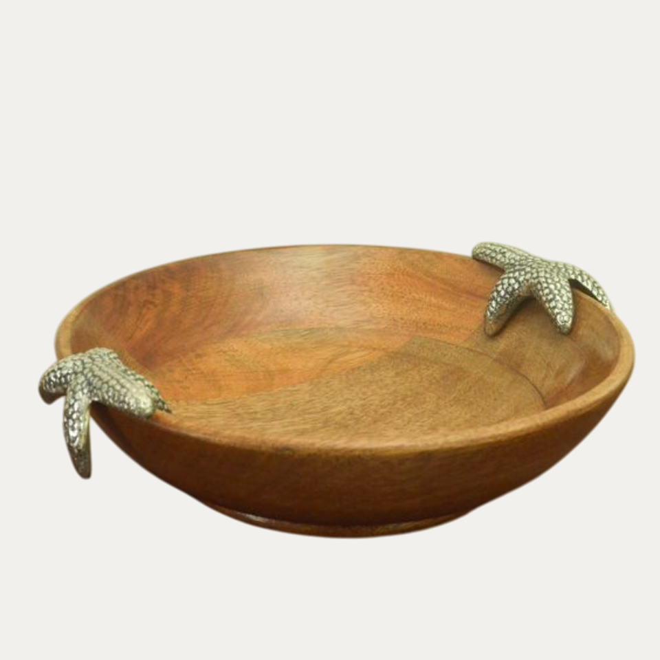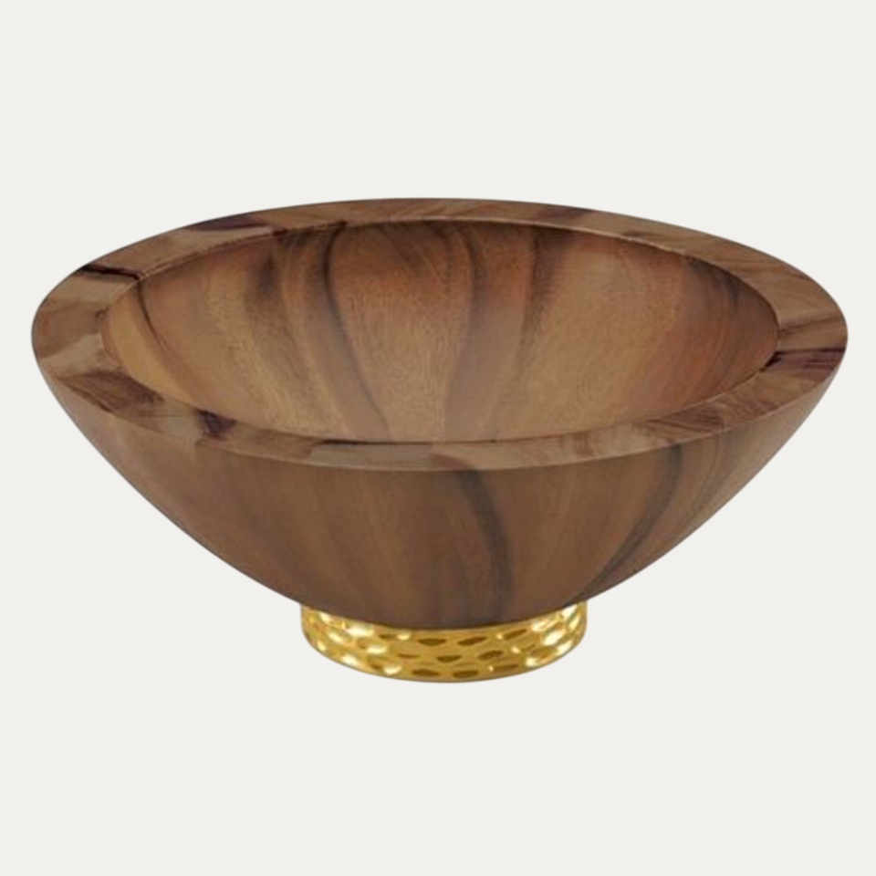 ชามเสิร์ฟซุปและสลัดไม้โบราณทำด้วยมือขัดด้วยทองทองฐานสำหรับงานแต่งงาน