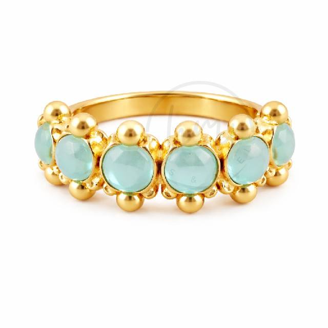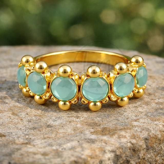 แหวนทองประดับพลอยอะควาแคลซิโดนีทำมือ วงแหวนทองเหลืองชุบทอง 18K สำหรับผู้หญิง