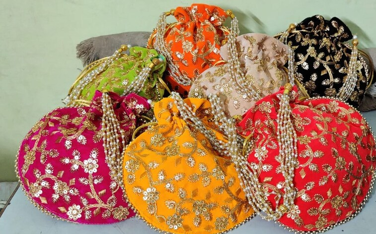 กระเป๋าปักลายงานฝีมือแบบอาร์ติทารีสำหรับผู้หญิง กระเป๋าใส่ของแบบมีเชือกสำหรับงานแต่งงาน ใช้ใส่ต่างหู แหวน กำไล