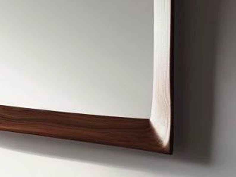 กระจกขอบไม้วอลนัทแท้แบบไม่สมมาตรทำด้วยมือมีสไตล์อาร์ตเดคโคสำหรับตกแต่งบ้านในห้องน้ำ