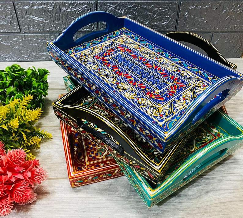 ถาดเสิร์ฟงานแฮนด์เมด ดีไซน์รูปทรงแปลกตา สวยงาม ลวดลายสั่งทำได้ สำหรับใช้ในครัว จัดเก็บ หรือเสิร์ฟอาหารในร้านอาหาร