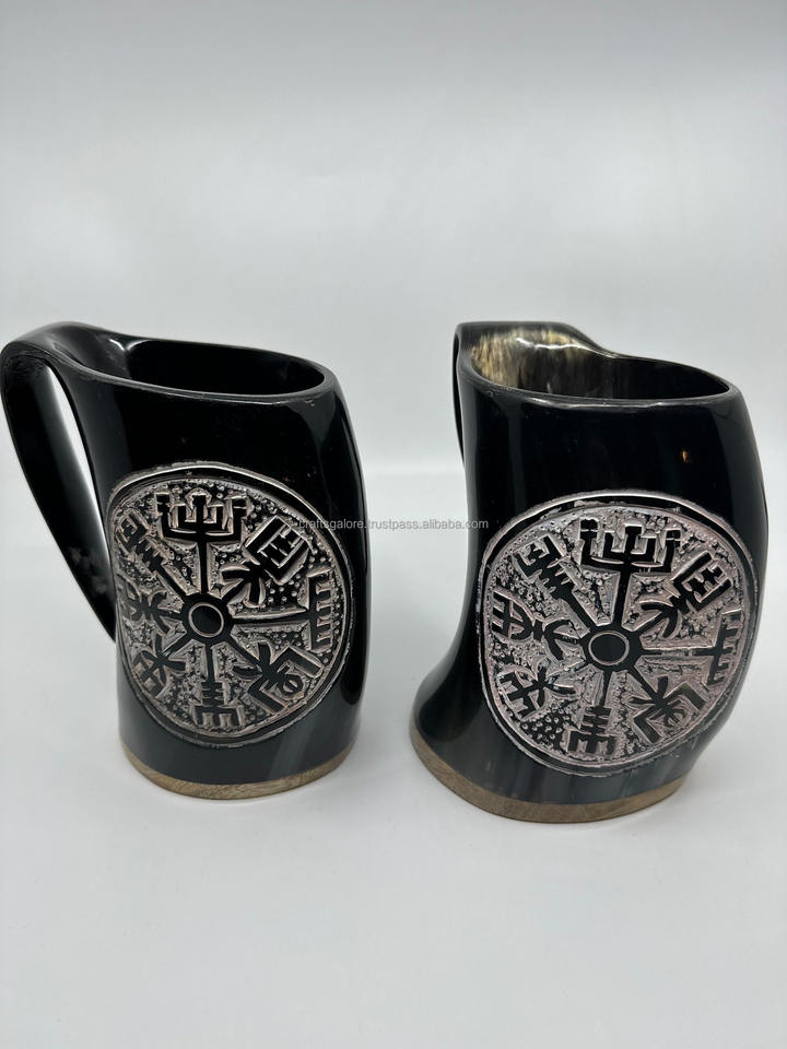 เขาสัตว์ทำมือแท้สำหรับดื่มเครื่องดื่มสไตล์ไวกิ้ง เหมาะสำหรับงานเฉลิมฉลองแบบนอร์ส งานเลี้ยงอันยิ่งใหญ่ และการดื่มแก้วเพื่อความเป็นเอกลักษณ์