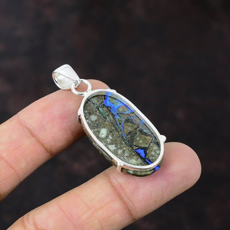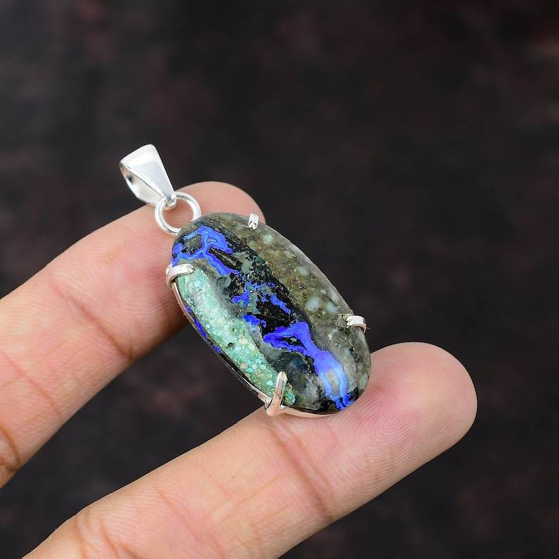 จี้ทำมือจากอะซูไรต์ มาลาไคต์ เงินแท้ 925 สไตล์โบโฮ ประดับด้วยพลอยสีน้ำเงินเขียวธรรมชาติ สำหรับผู้หญิง