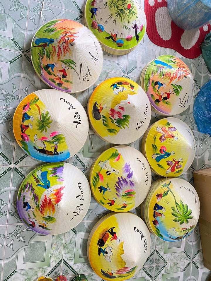 หมวกฟางทำมือจากไม้ไผ่แบบดั้งเดิม ผลิตในเวียดนาม ราคาดีที่สุด คุณภาพสูง หมวกทรงกรวยจากใบไม้ น็อตลา เวียดนาม ราคาถูก