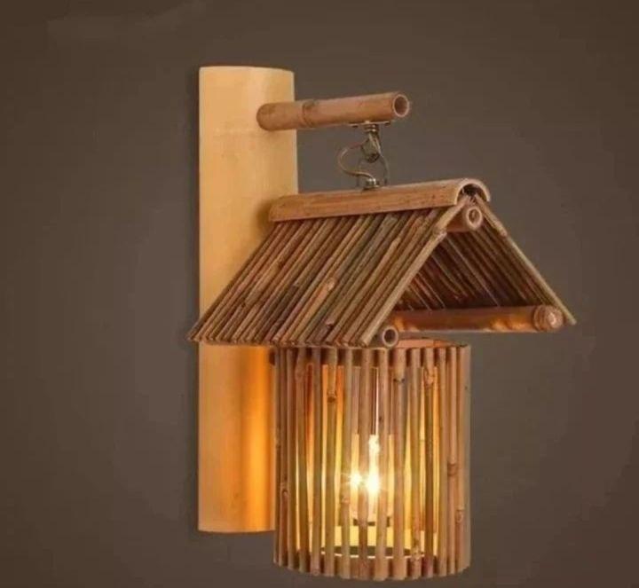 โคมไฟติดผนังไม้ไผ่ทำมือ เป็นมิตรกับสิ่งแวดล้อม สไตล์เรียบง่าย โคมไฟแขวนไม้ สำหรับตกแต่งบ้าน ให้แสงนุ่มนวลในเวลากลางคืน