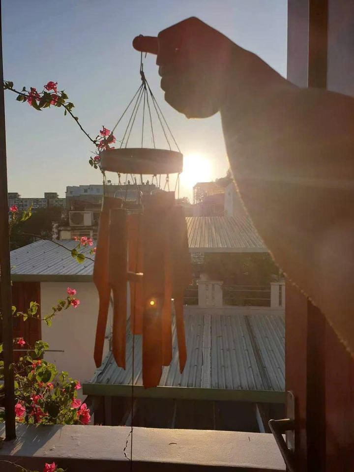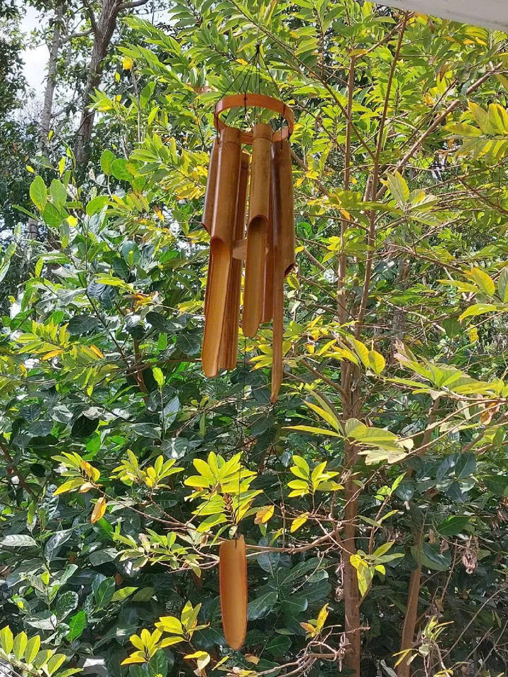 กระดิ่งลมไม้ไผ่ทำมือ รูปทรงหมวกเวียดนาม ของตกแต่งบ้าน กระดิ่งลมไม้ไผ่ธรรมชาติ เสียงไพเราะ ขนาดใหญ่ ขนาดกลาง