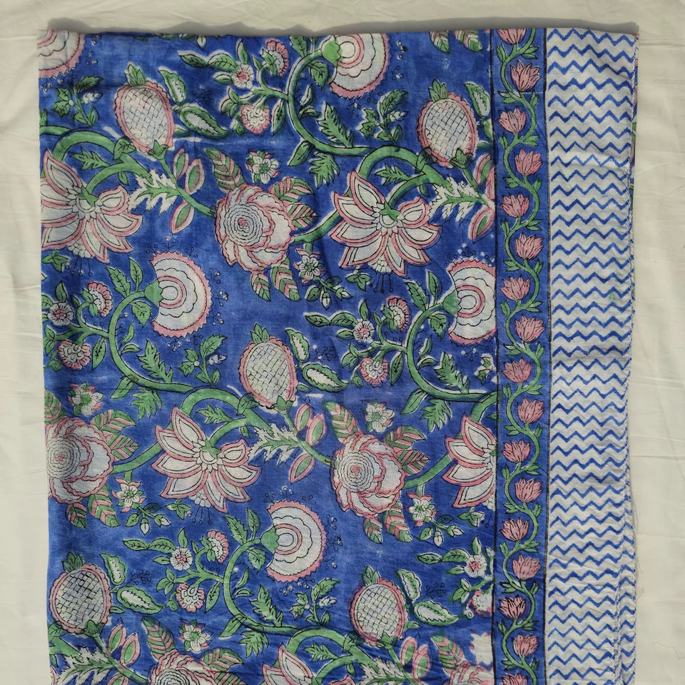 ผ้าโสร่งผ้าฝ้ายพิมพ์ลายบล็อกมือสไตล์อินเดีย