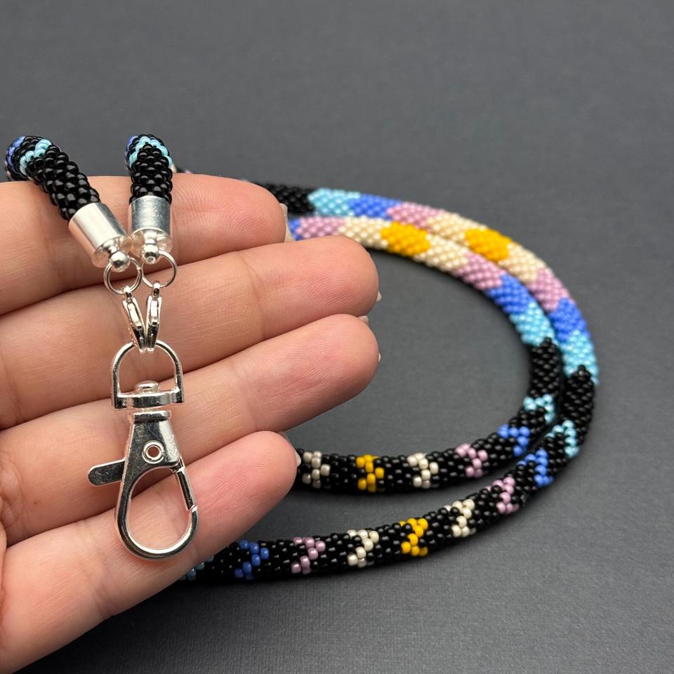 สร้อยประดับตัวทำมือประดับลูกปัดพร้อมตัวล็อคโลหะ ทอสีดำ ขาว เหลือง ชมพู ฟ้า และม่วง ลายเรขาคณิต เครื่องประดับสุดเก๋