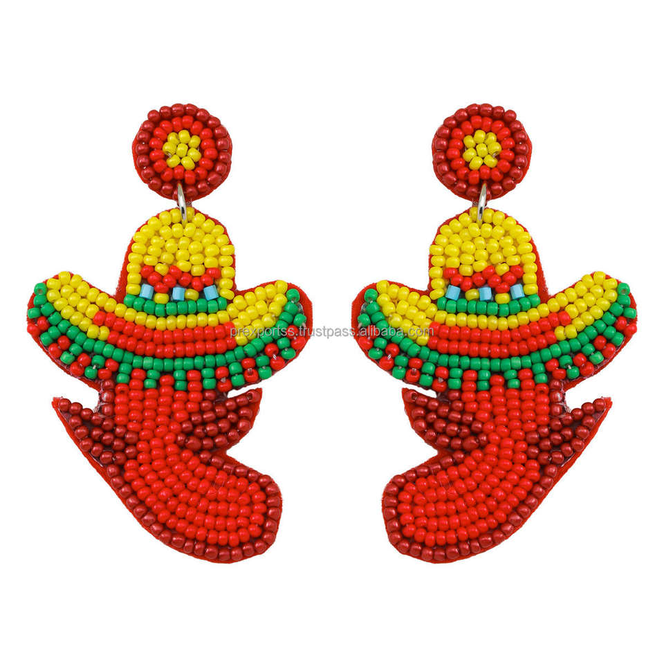 ต่างหูโบฮีเมียนทำมือประดับลูกปัดดอกไม้รูปโบว์ เครื่องประดับห้อยระย้า สำหรับทุกเพศ หลากสี ของขวัญ สั่งทำได้
