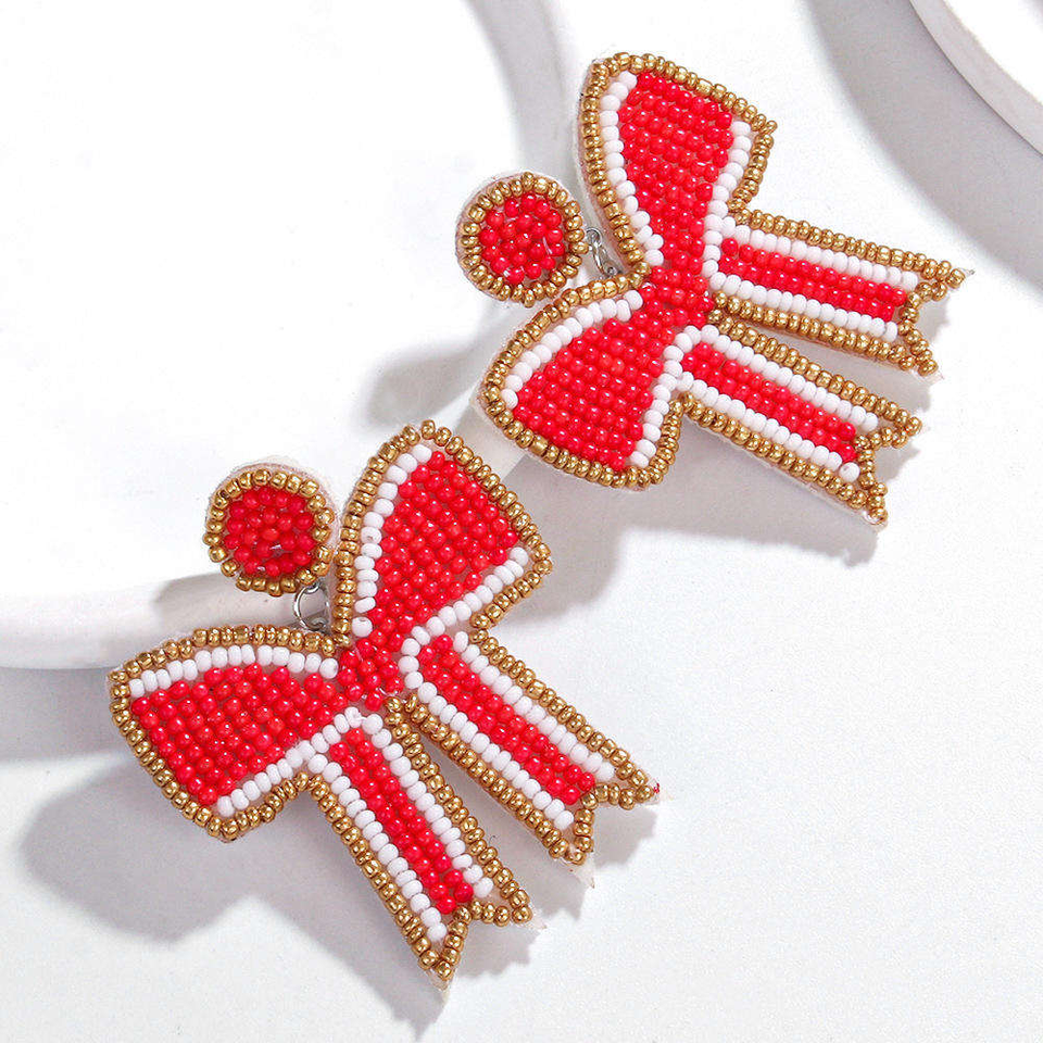 ต่างหูลูกปัดโบว์ทำด้วยมือเครื่องประดับแบบห้อยต่างหูลูกปัดปักสำหรับผู้หญิงผู้หญิงออกแบบได้ตามต้องการ