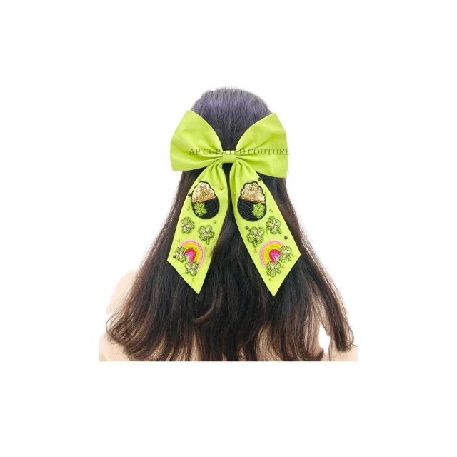 โบว์ประดับลูกปัดทำมือ ปักลายวันเซนต์แพทริก แฟชั่นสำหรับผู้หญิง โบว์งานปาร์ตี้สุดหรู สีเขียว ตกแต่งงานเฉลิมฉลอง ออกแบบตามสั่ง