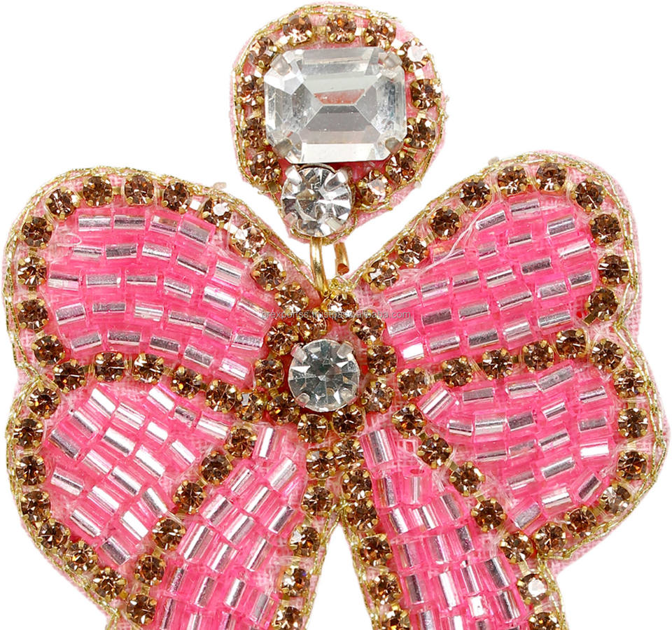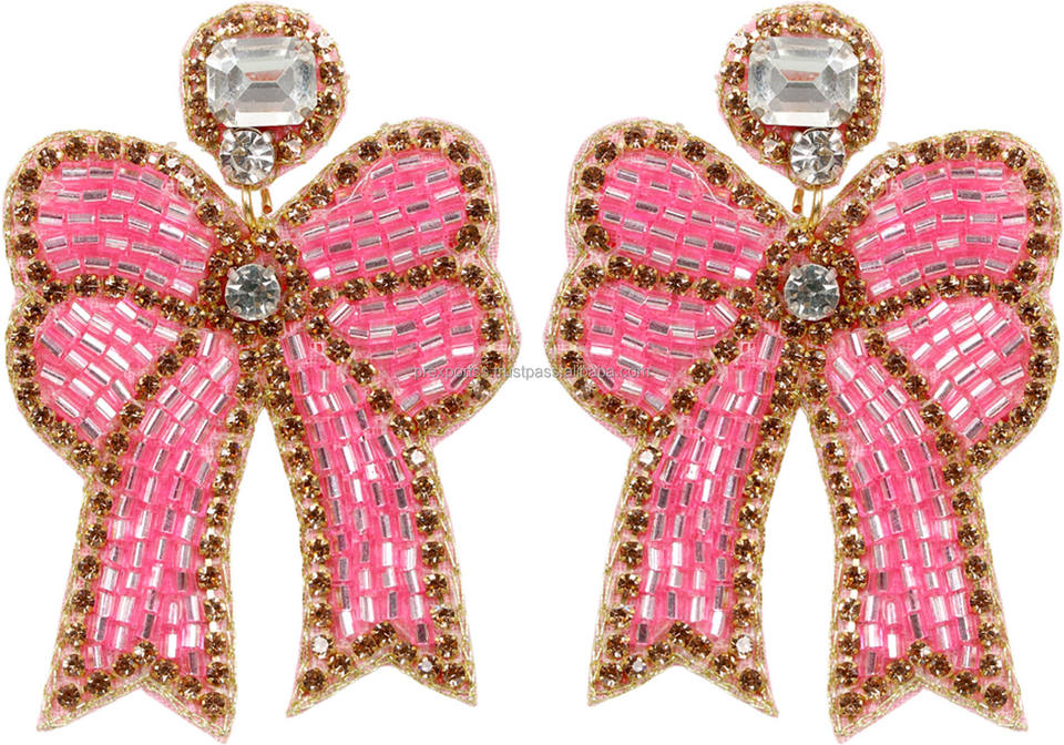 ต่างหูลูกปัดรูปโบว์สีชมพูเครื่องประดับแฟชั่นที่เน้นการประดับด้วยพลอยเทียมต่างหูทันสมัยของขวัญสำหรับงานปาร์ตี้สุดหรูขายส่ง