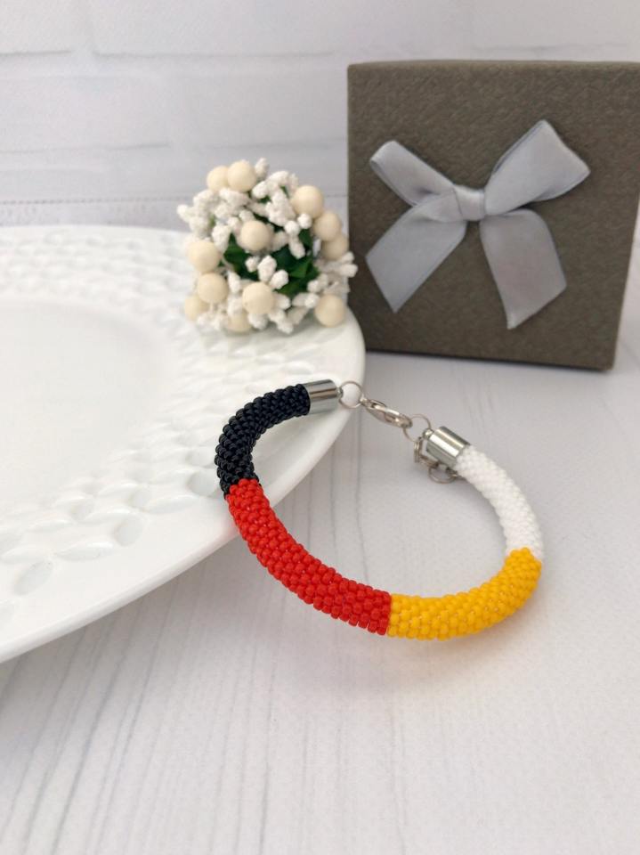 สร้อยข้อมือลูกปัดทำด้วยมือลูกปัดสีขาวสีเหลืองสีแดงสีดำของขวัญที่ไม่ซ้ำกันของความงามช่างฝีมือและสไตล์อมตะ
