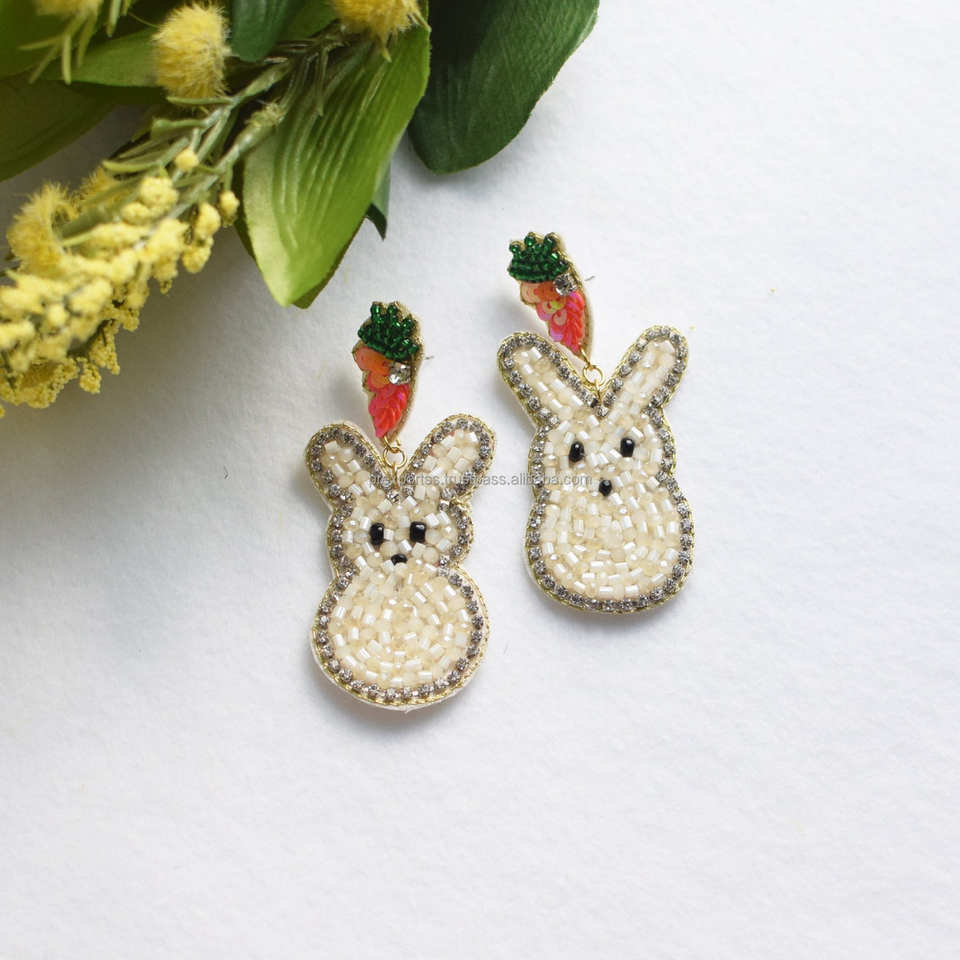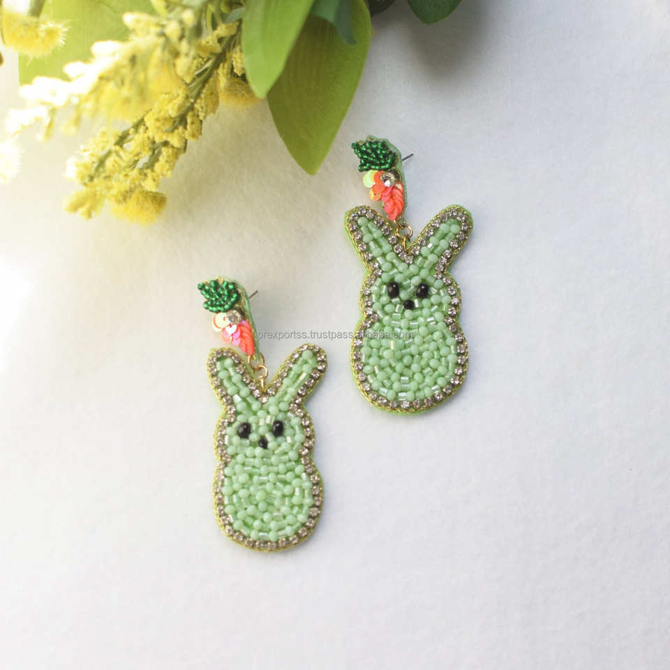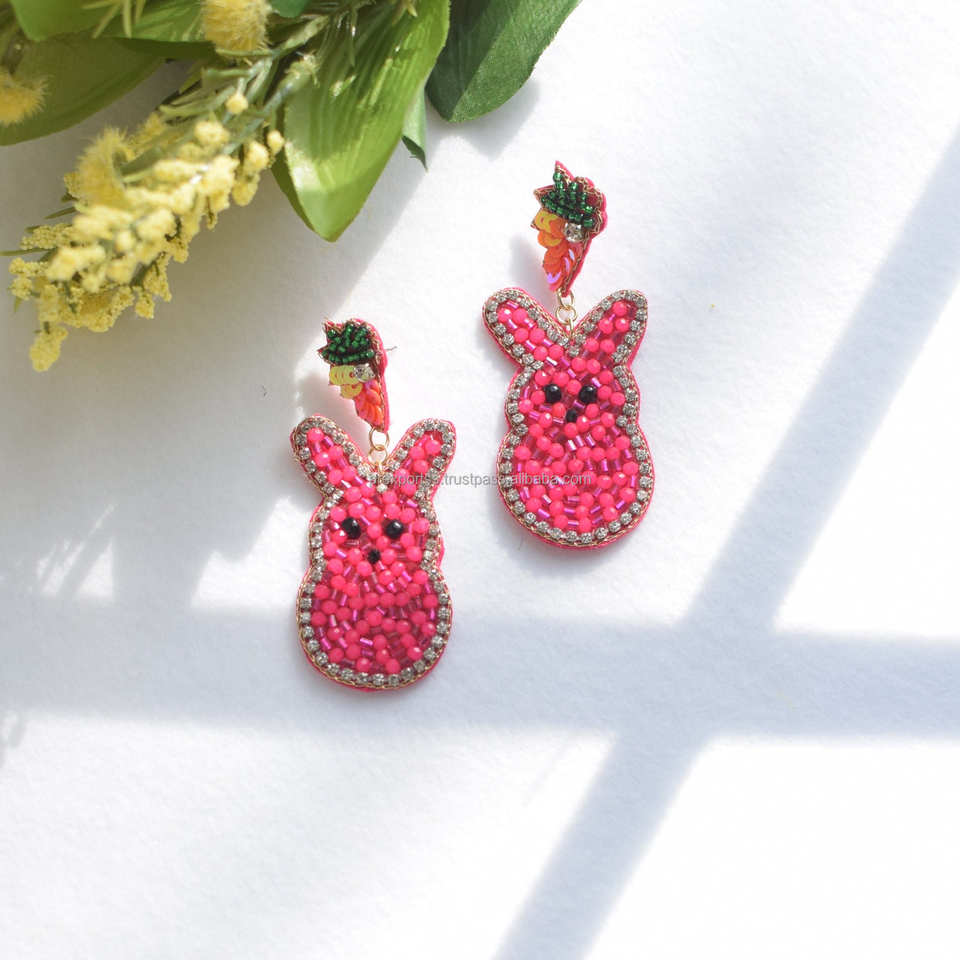 Handmade Fashion Multicolor Beaded Bunny Earrings Statement Rabbit Drop Carrot Jewelry Classic Unisex Gift Party Custom Size