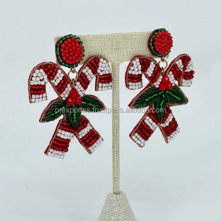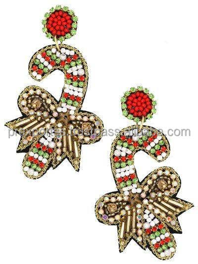 ต่างหูห่วงลูกกวาดพร้อมลูกปัดทำด้วยมือสไตล์โบฮีเมียนคริสต์มาสสำหรับเทศกาลวันหยุดทั้งชายและหญิง