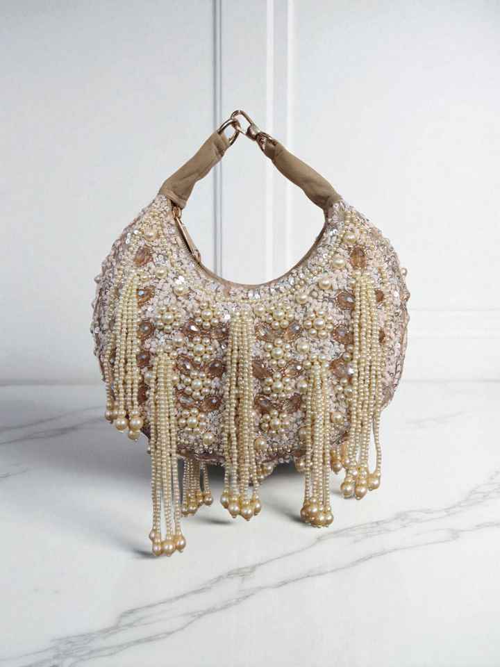 Handmade Suede Beaded Clutch Purse with Embroidery & Pearl Lady Fashion Flap for Bride Party Evening Use From India