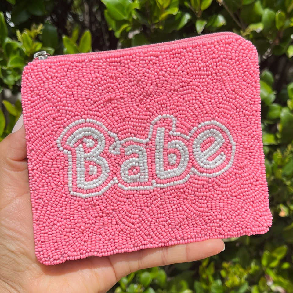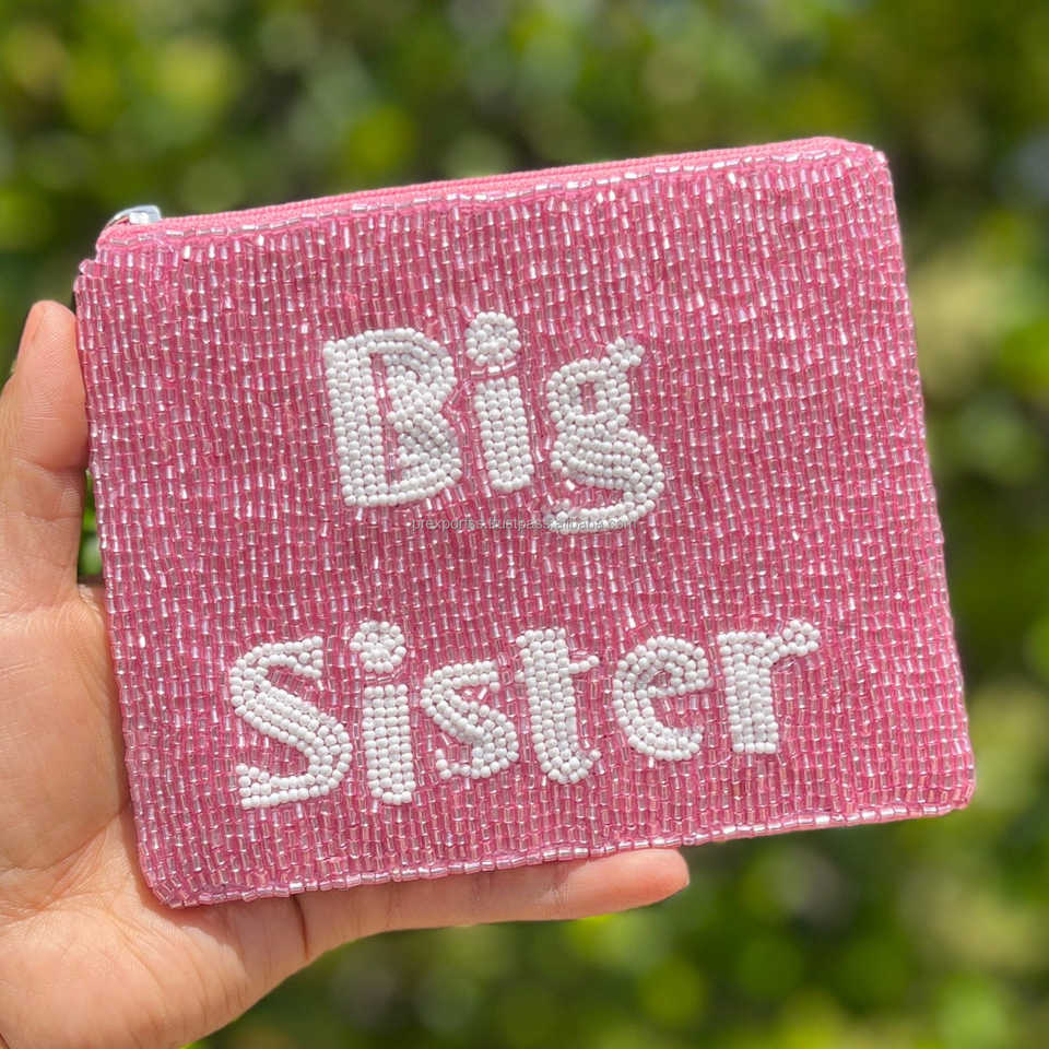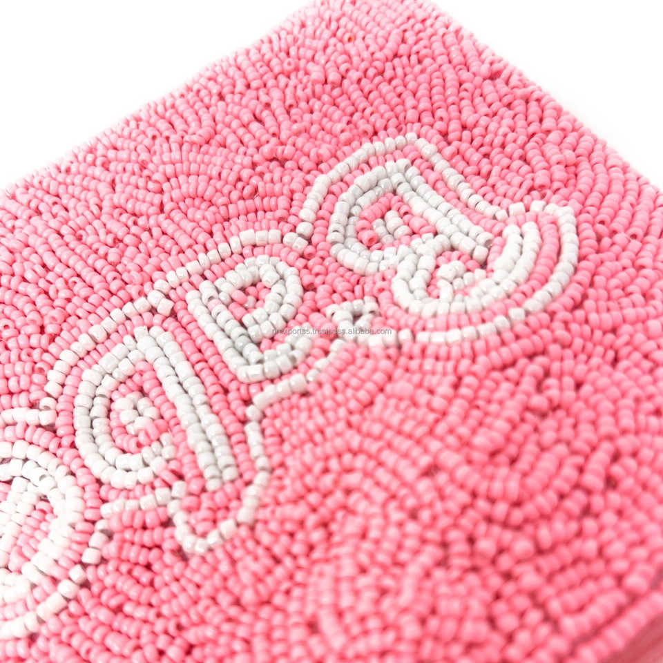 กระเป๋าใส่เหรียญประดับลูกปัดงานแฮนด์เมดกระเป๋าเงินขนาดเล็กสำหรับเด็กผู้หญิงปักลายเม็ดลูกปัดสีชมพูสำหรับใส่เหรียญขนาดเล็กตามสั่ง