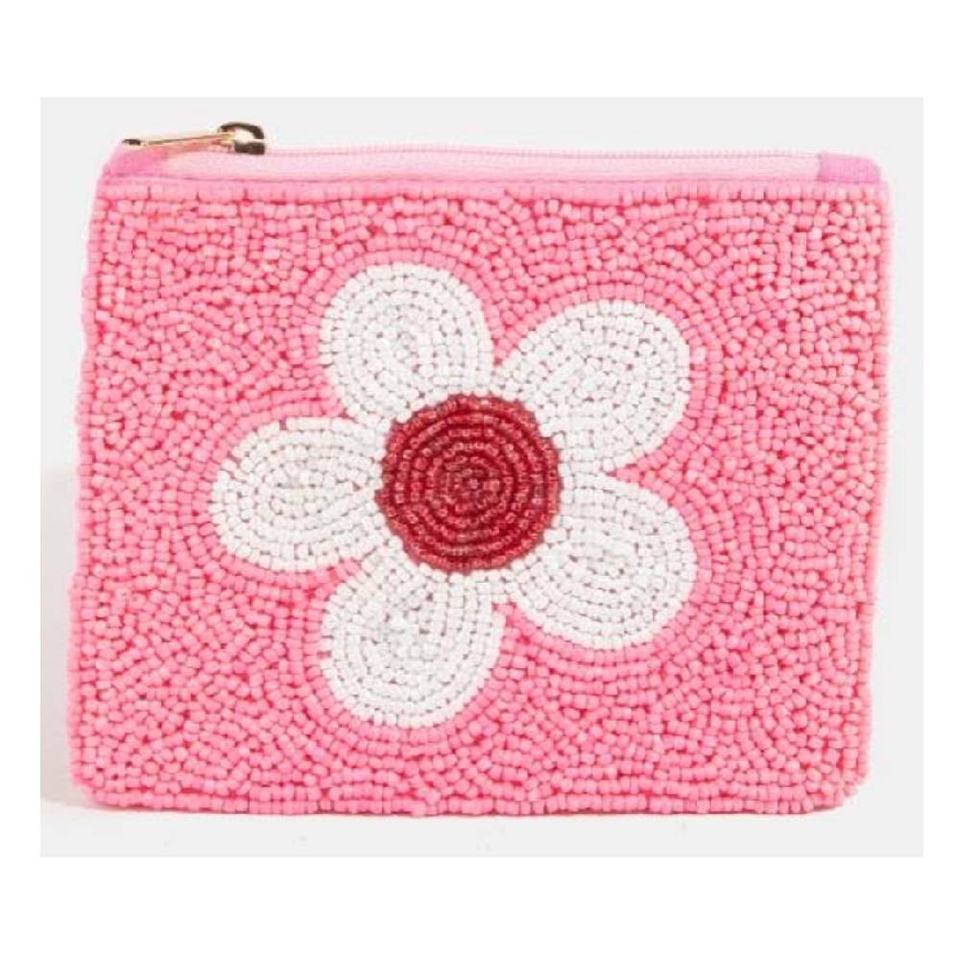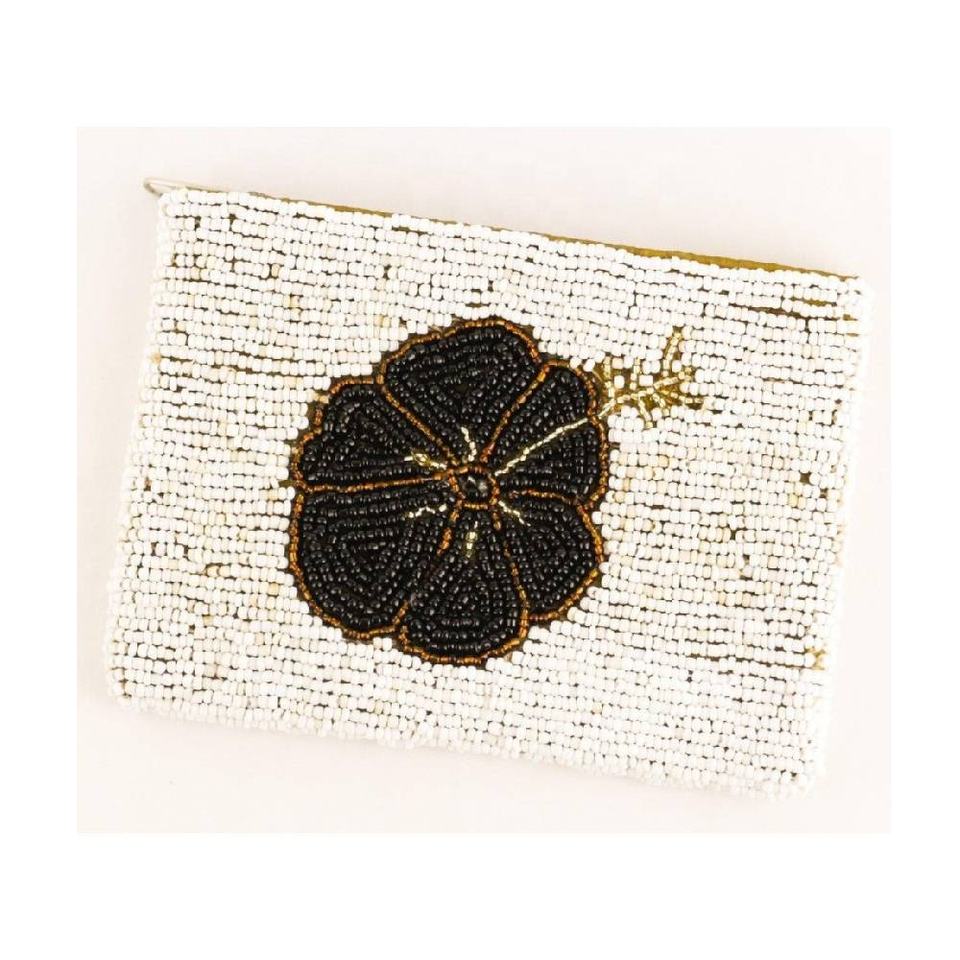 กระเป๋าใส่เหรียญขนาดเล็กประดับลูกปัดทำมือ ลายดอกชบา เป็นมิตรกับสิ่งแวดล้อม ทนทาน ปิดด้วยซิป พกพาสะดวก ดีไซน์สร้างสรรค์อเนกประสงค์